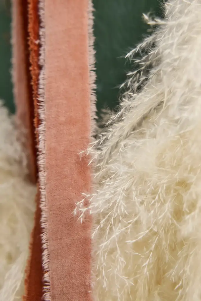 Hand-crafted from feathery pampas grass, this heart-shaped wreath makes a playful and airy addition to your Valentines Day dcor.