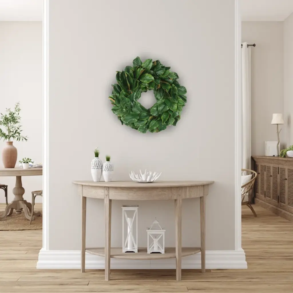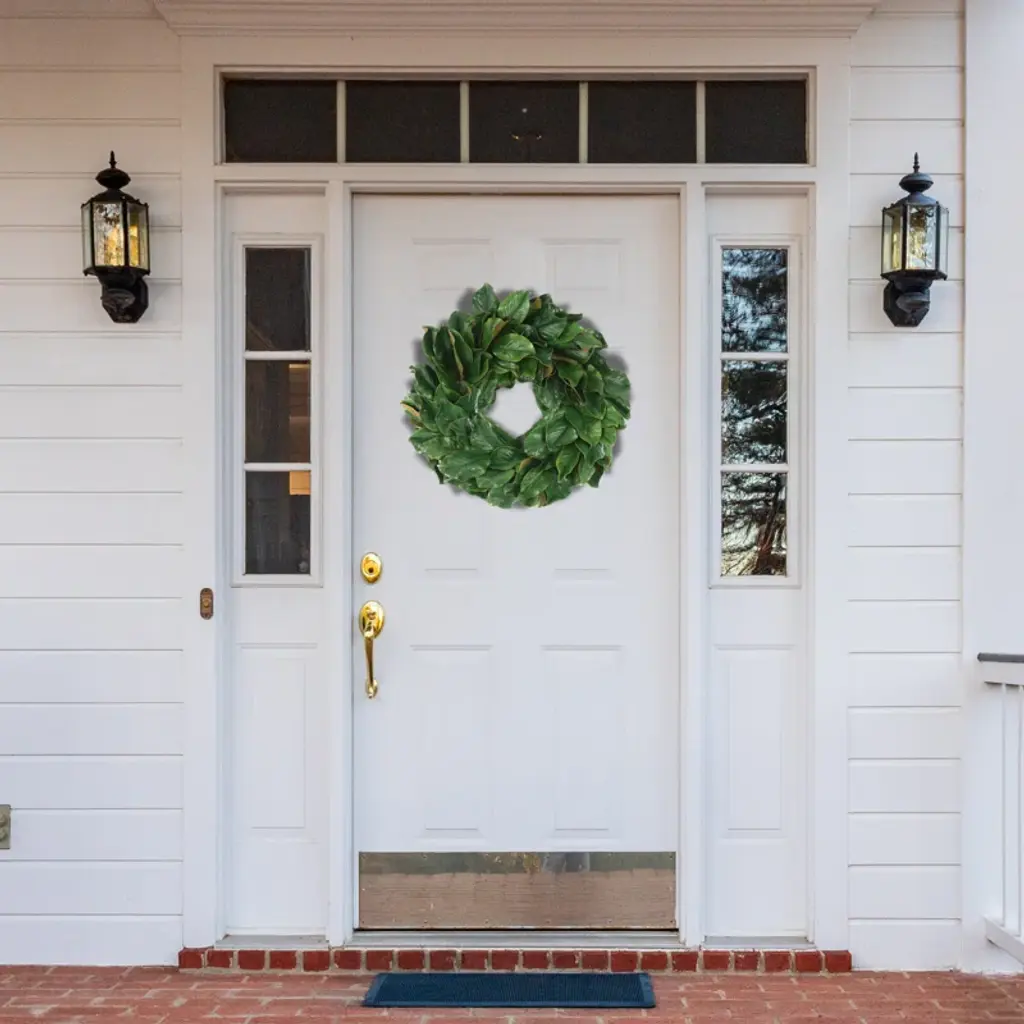 Bring the beauty of nature to the comfort of your own home with this stunning wreath! Featuring lush, green magnolia leaves, this wreath is a staple for the fall and winter months. Complementing any style decor, offers the perfect seasonal touch for your space. With no maintenance required, you can simply unbox and hang your wreath to enjoy worry-free all season long!