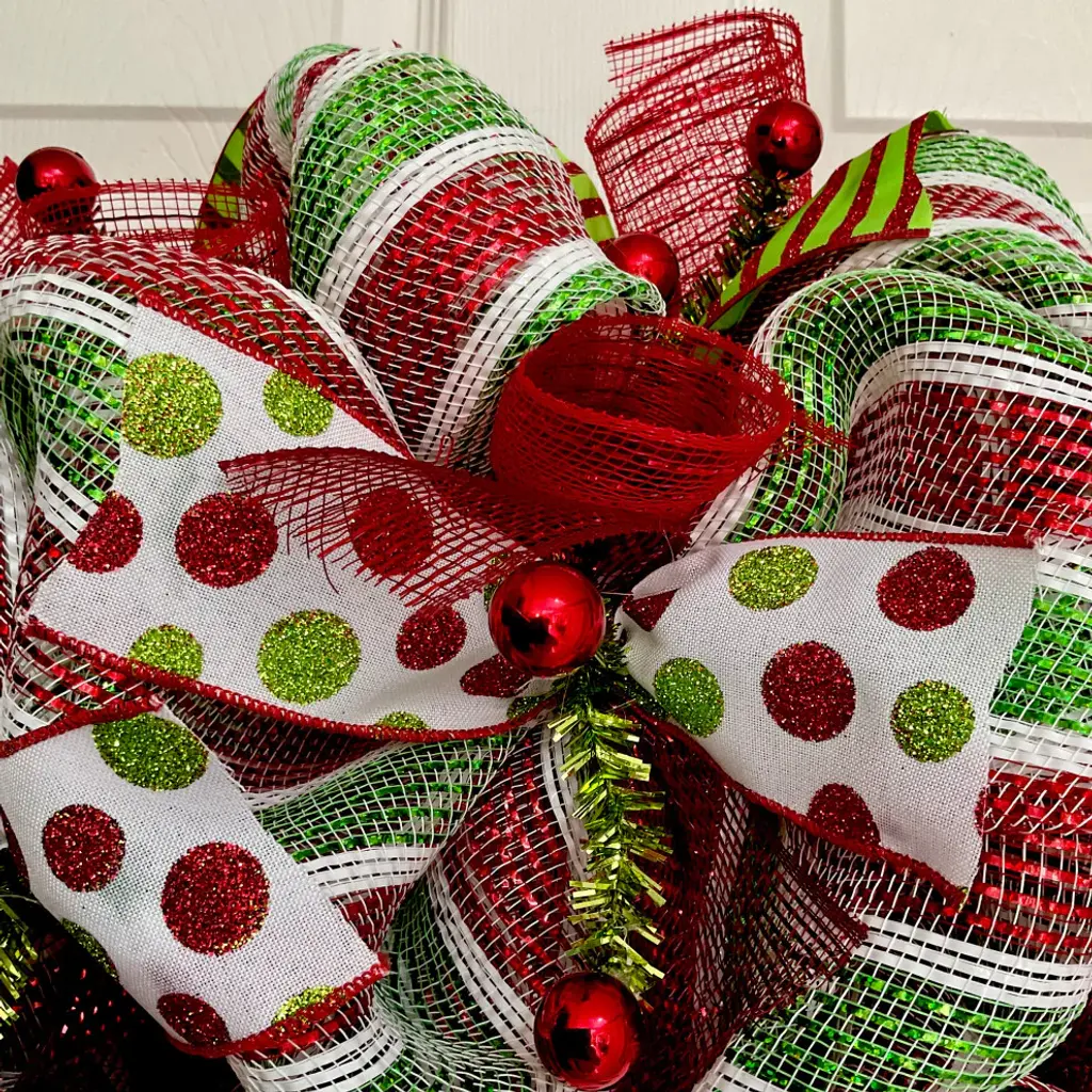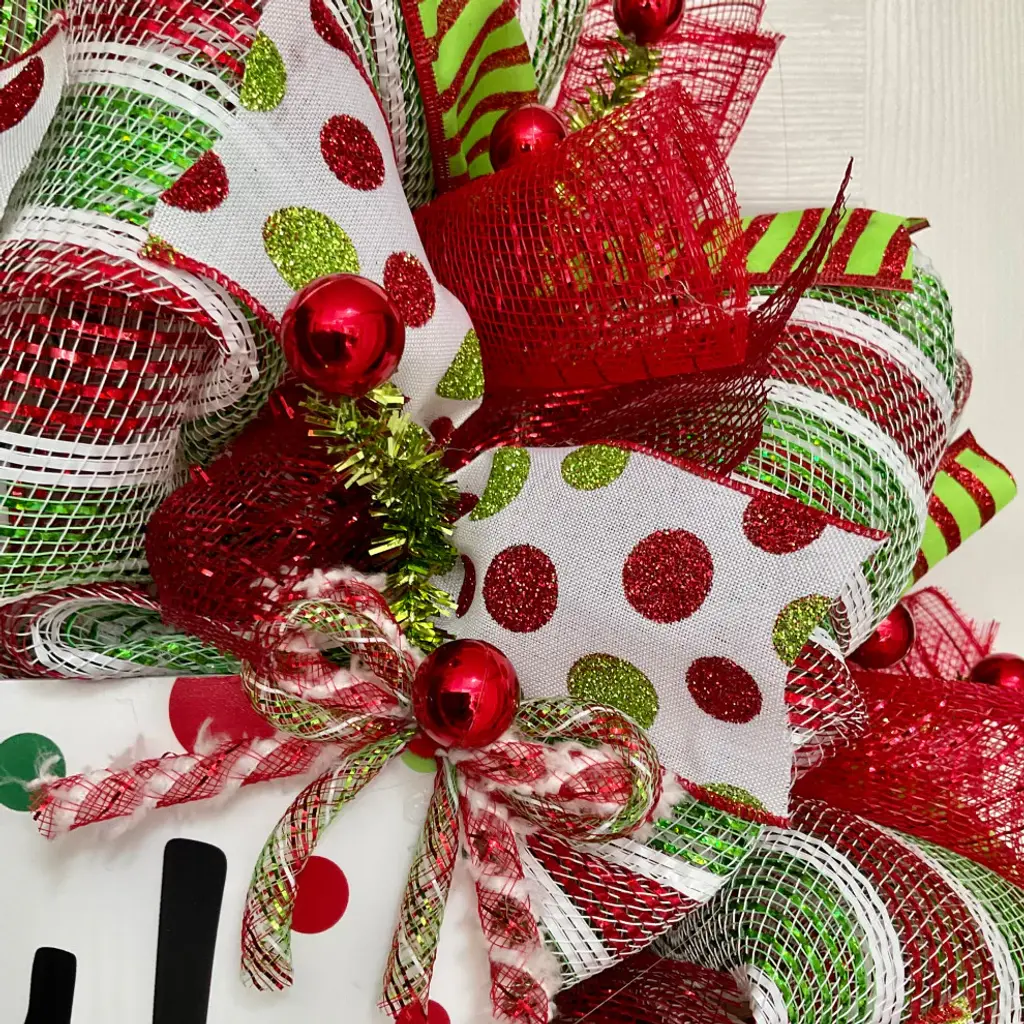 Jolly Christmas Red And Green Striped Wreath Handmade Deco Mesh