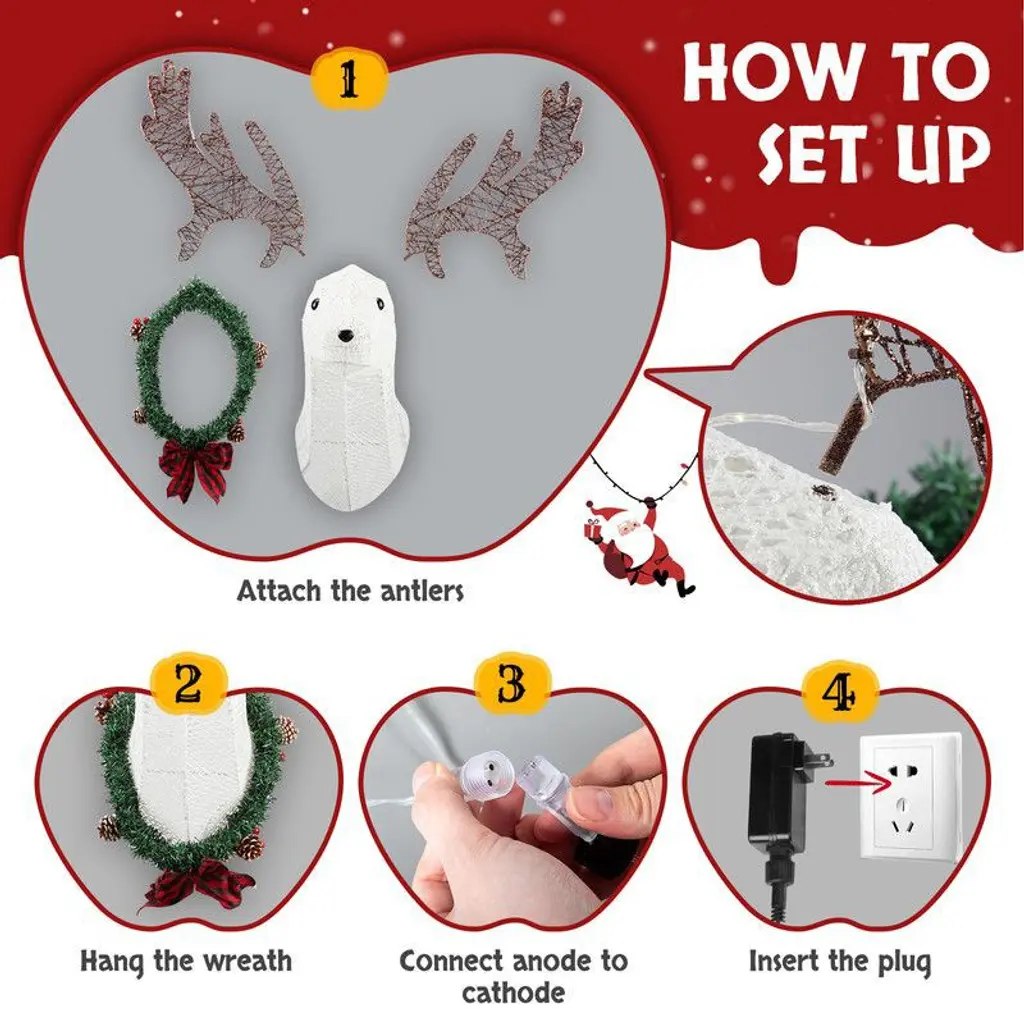 Add a festive touch to your home this holiday season with our stunning Lighted Christmas Wall Decor Reindeer Head. Designed to bring warmth and cheer to any space, this glowing decoration effortlessly enhances both indoor and outdoor settings. Its pre-lit design creates a magical ambiance that brightens up your walls, doors, or windows, making your home the centerpiece of holiday celebrations. Easy to set up and built to withstand winter weather, this versatile decoration is perfect for spreading joy and holiday spirit wherever you hang it.