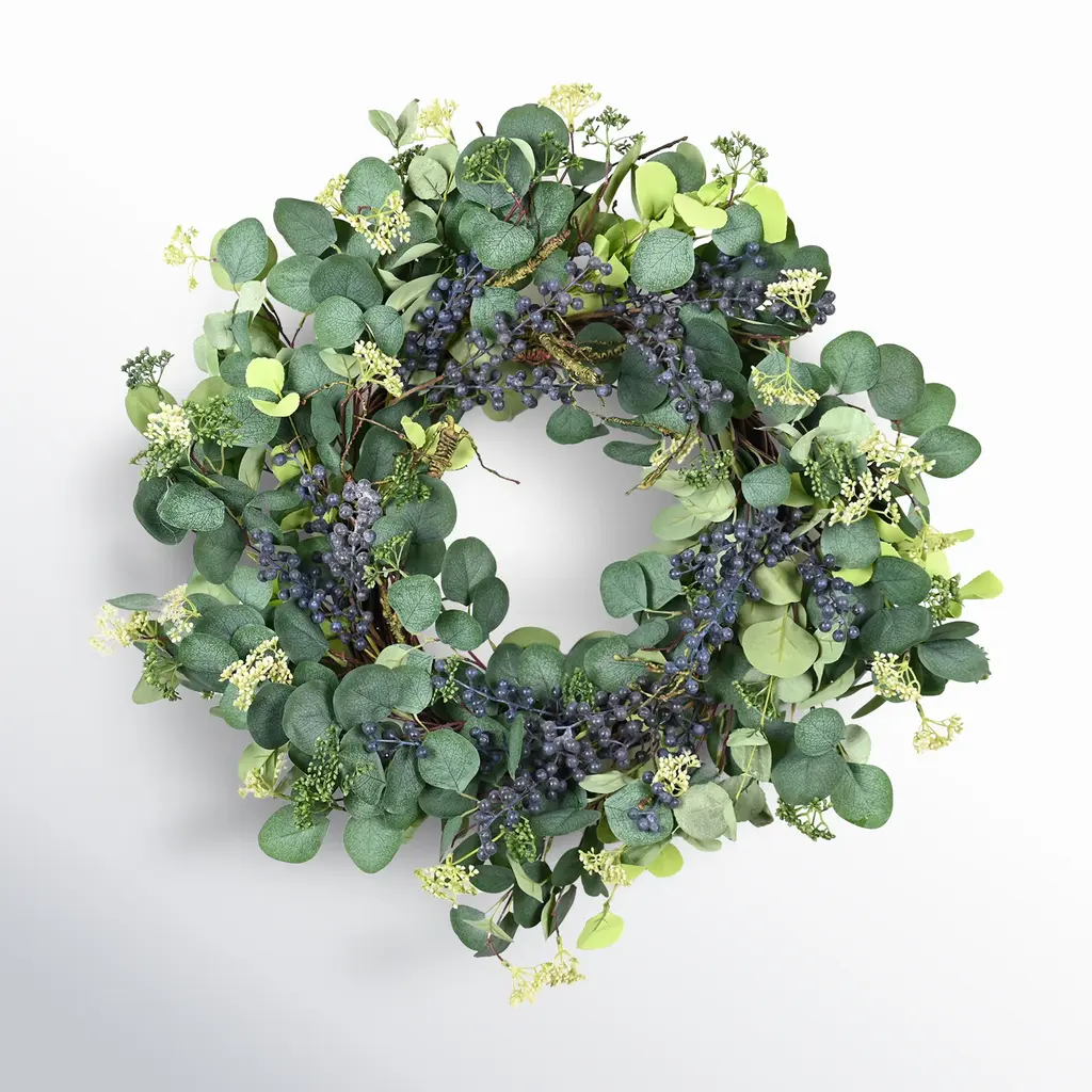 Large Artificial Mixed Eucalyptus Succulent Greenery Wreath With Berries 18"