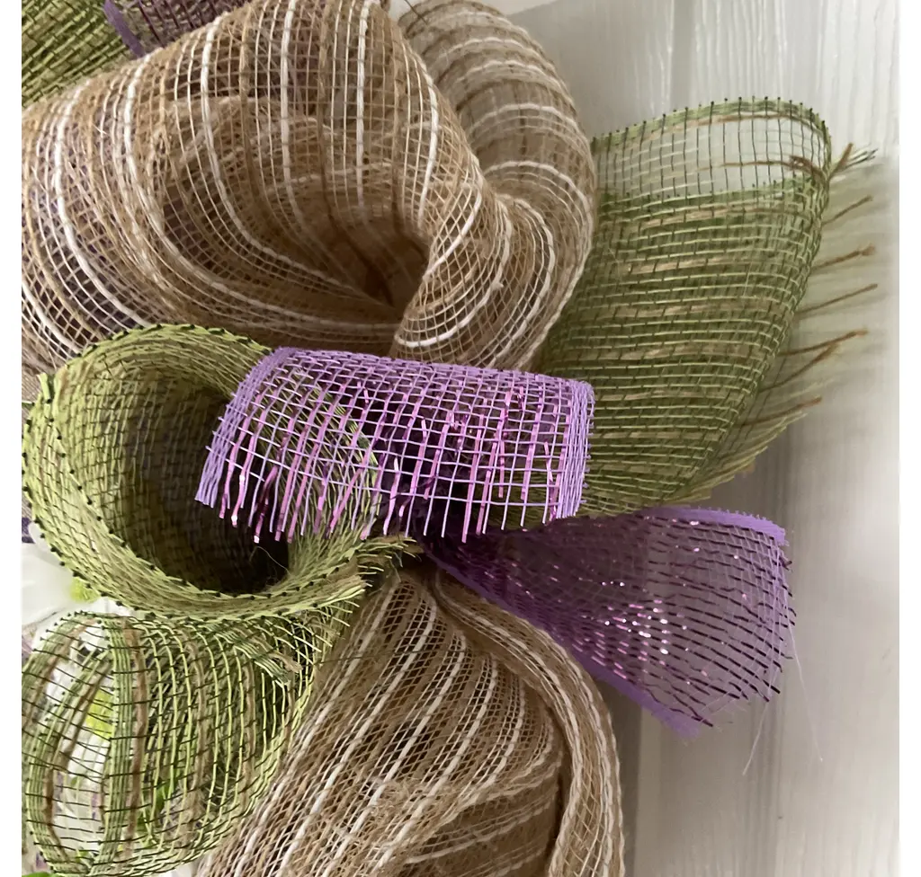 Lavender And Mint Spring Floral Handmade Deco Mesh Wreath, 27 Inch