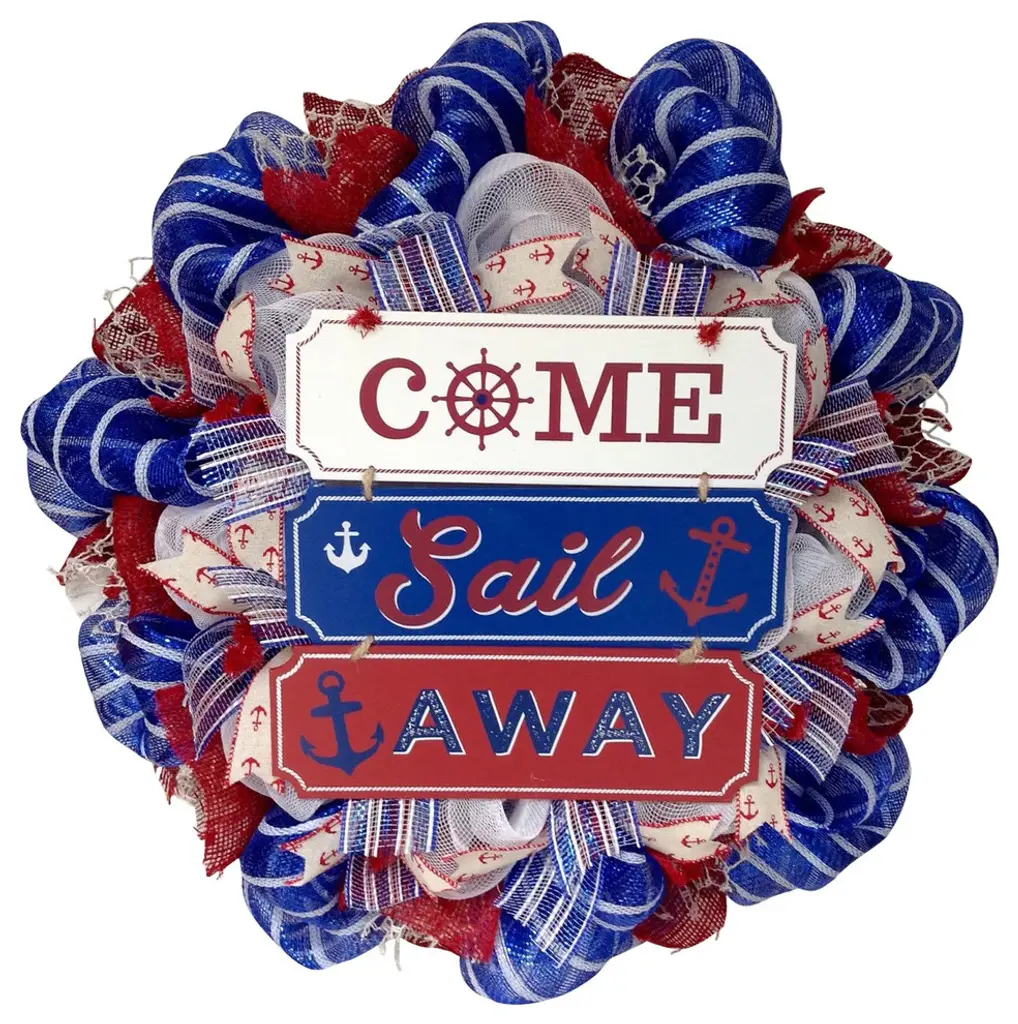Beautiful, New, Large, Full, Premium, Handmade, Deco Mesh patriotic door or wall wreath. Made of durable mesh, the outer ring is royal blue and the inner ring is shimmering iridescent white deco mesh. A Large "Let Freedom Ring" chalkboard decor sign rests in the center. The sign is decorated chalked firecrackers and white chalk like stars. Bows of white, blue and red plaid mesh, with red and blue sparkling Stars and Stripes ribbons are placed along the exterior. Gorgeous, sheer glitter red, blue, silver star ribbons and shimmering sheer red and blue tiny starred ribbon are placed along the center wreath. Size is large, approximately 24 inches in diameter and 6 inches deep. See photo for reference. Perfect for all patriotic holidays, classrooms, government buildings, law offices or home decor