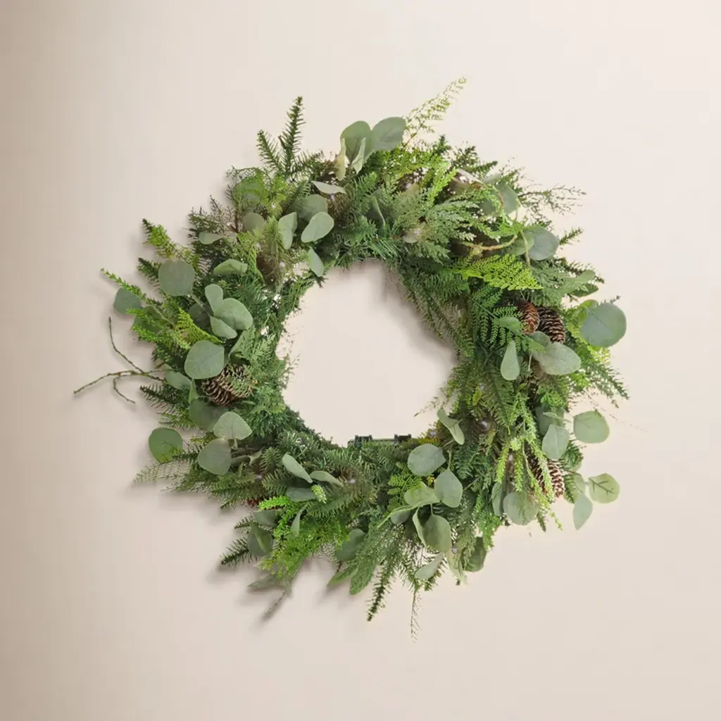 Adorn your front door or indoor wall with a wreath alive with fresh greenery and summery flowers. Silver eucalyptus, boxwood and salal combine with colorful strawflowers, globe amaranth and faux berries to spin a verdant and textural ring. Procured fresh from a family farm, the cut stems are hand-selected to create this lush floral wreath. The live wreath dries beautifully and once dried will last for months.We've partnered with Creekside Farms to offer you this fresh and natural collection of wreaths. A three-generation, family-owned and -operated farm located in California's Monterey County, Creekside Farms assembles each wreath by hand ensuring that each piece is unique and made to order with fresh botanicals.