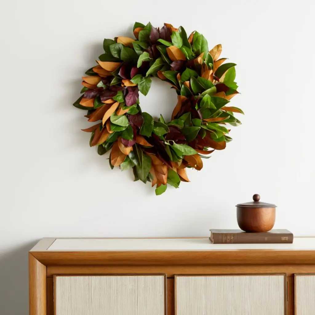 A favorite holiday decoration in Southern homes, magnolia leaves are renowned for their large glossy leaves and golden felt-like undersides. Gathering together freshly hand-harvested leaves, the wreath brings magnolia's natural beauty to hearth and home. To extend the life of this wreath, which dries beautifully, display in a cool, dry location away from direct sunlight and heat.We've partnered with Creekside Farms to offer you this fresh and natural collection of wreaths. A three-generation, family-owned and -operated farm, Creekside Farms assembles each wreath by hand ensuring that each piece is unique and made to order with fresh botanicals.