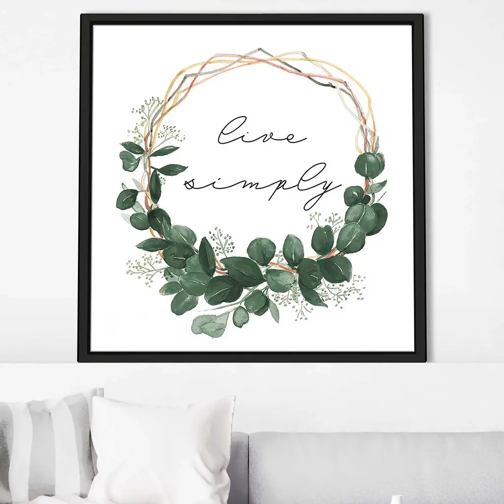 "Live Simply Wreath" Print On Floating Canvas - 39.5 X 39.5