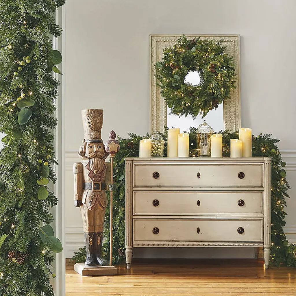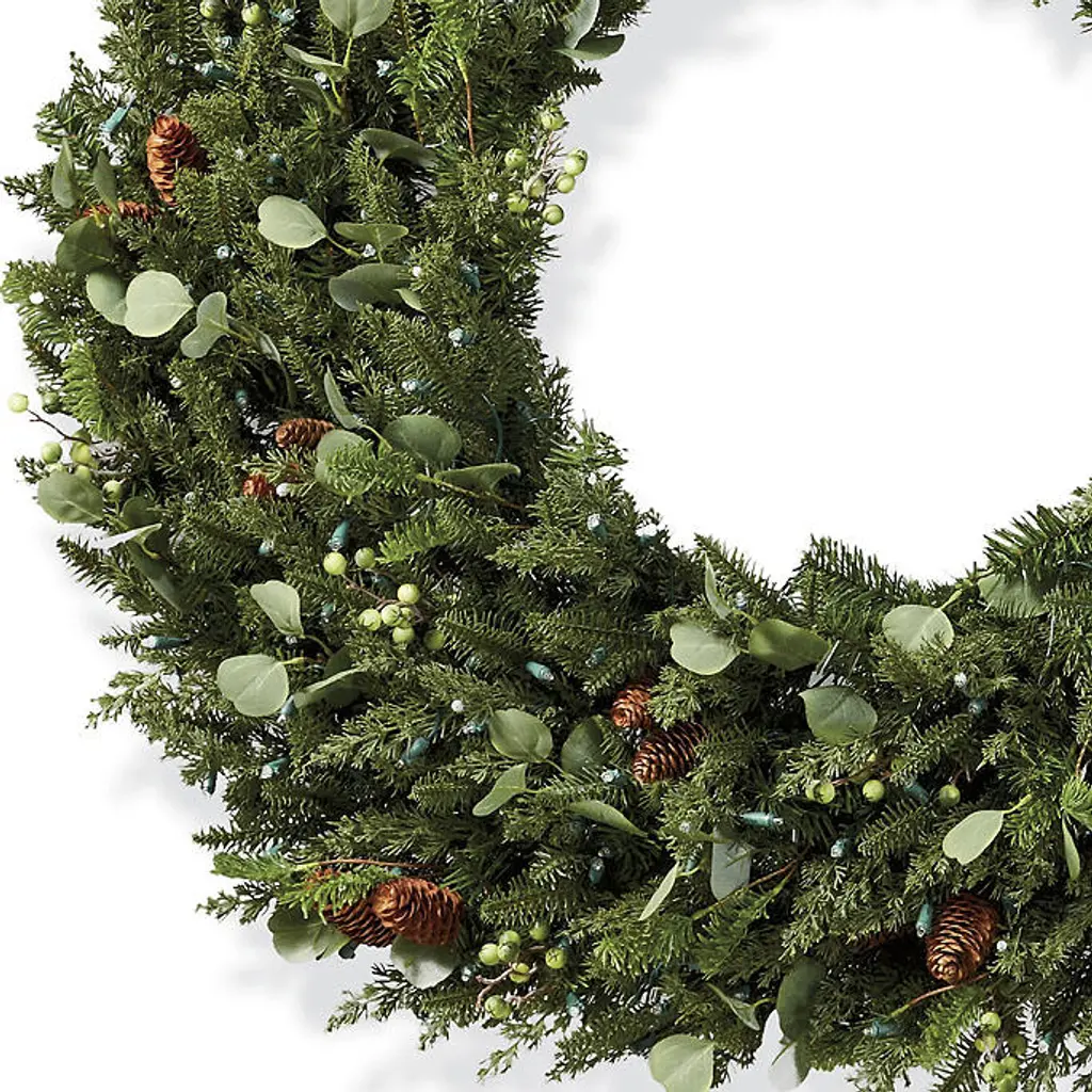 Vibrant faux green berries and delicate eucalyptus leaves enhance the lush realism of the Majestic Holiday Outdoor Wreath. This stunning arrangement perfectly captures the rich tones and textures of spruce, eucalyptus, juniper greenery, green berries and lifelike pine cones. It's nearly indistinguishable from fresh-cut foliage, yet its beauty will last for seasons to come. For indoor or covered outdoor use Polyethylene, PVC, wire and lifelike pine cones 28" wreath: 80 warm-white short-tip LED lights 36" wreath: 160 warm-white short-tip LED lights 48" wreath: 300 warm-white short-tip LED lights Built-in timer option automatically turns the lights on for 8 hours and off for 16 hours 28" wreath: 153 tips of greenery 36" wreath: 257 tips of greenery 48" wreath: 400 tips of greenery 28" wreath: Requires three "C" batteries (not included) 36" wreath: Requires three "D" batteries (not included) 48" wreath: 6 ft. cord Fluff and shape greenery after unpacking To maximize the life of your greenery, we recommend a limit of 3 months of outdoor exposure per year Wipe clean with a soft, dry cloth or duster Imported A Frontgate exclusive. At Frontgate, our primary focus is quality. We guarantee that every product we sell will stand up to the supreme test – our customers' satisfaction. To learn more about our policies, visit our Shipping & Processing, Returns & Exchanges and Warranty & Price Guarantee pages.