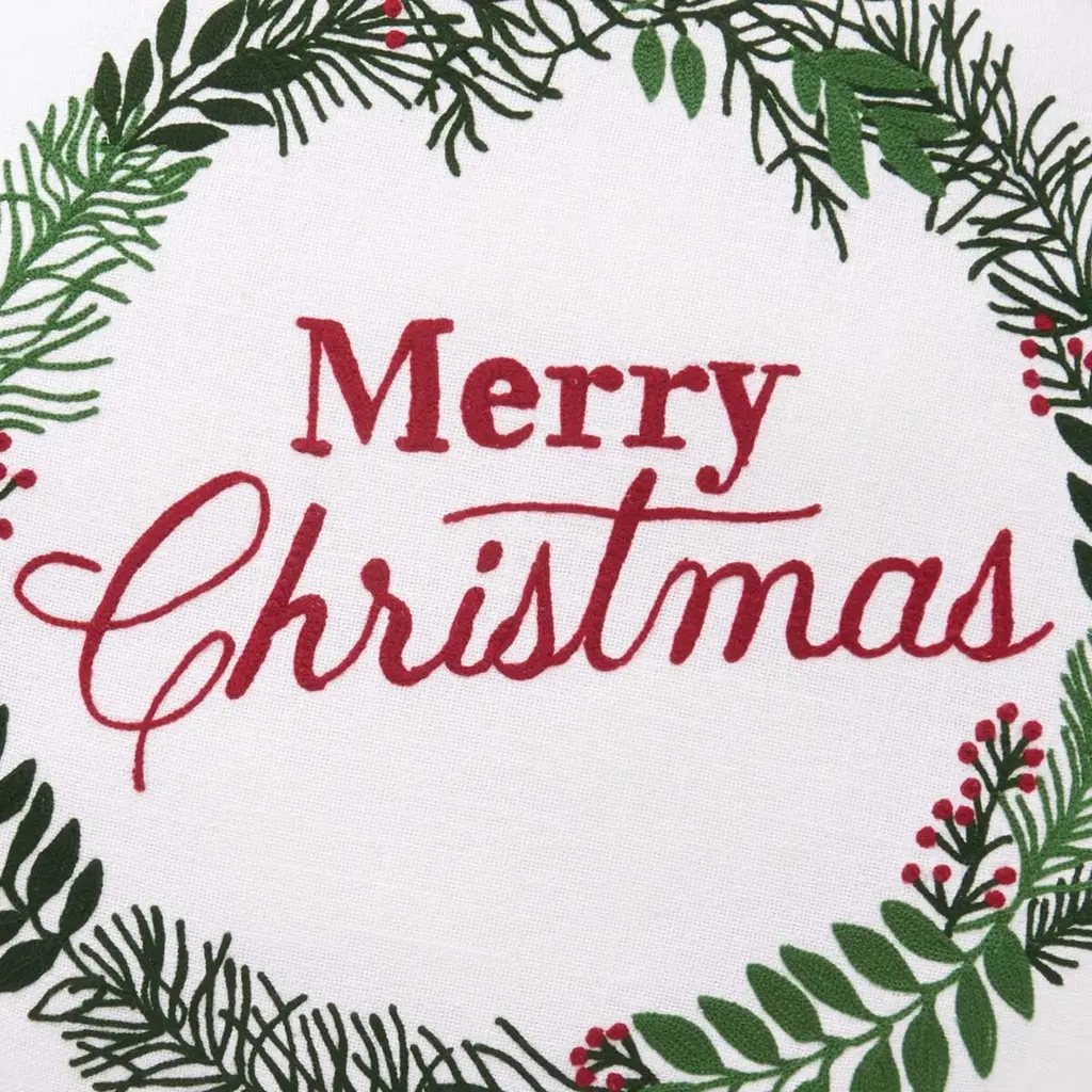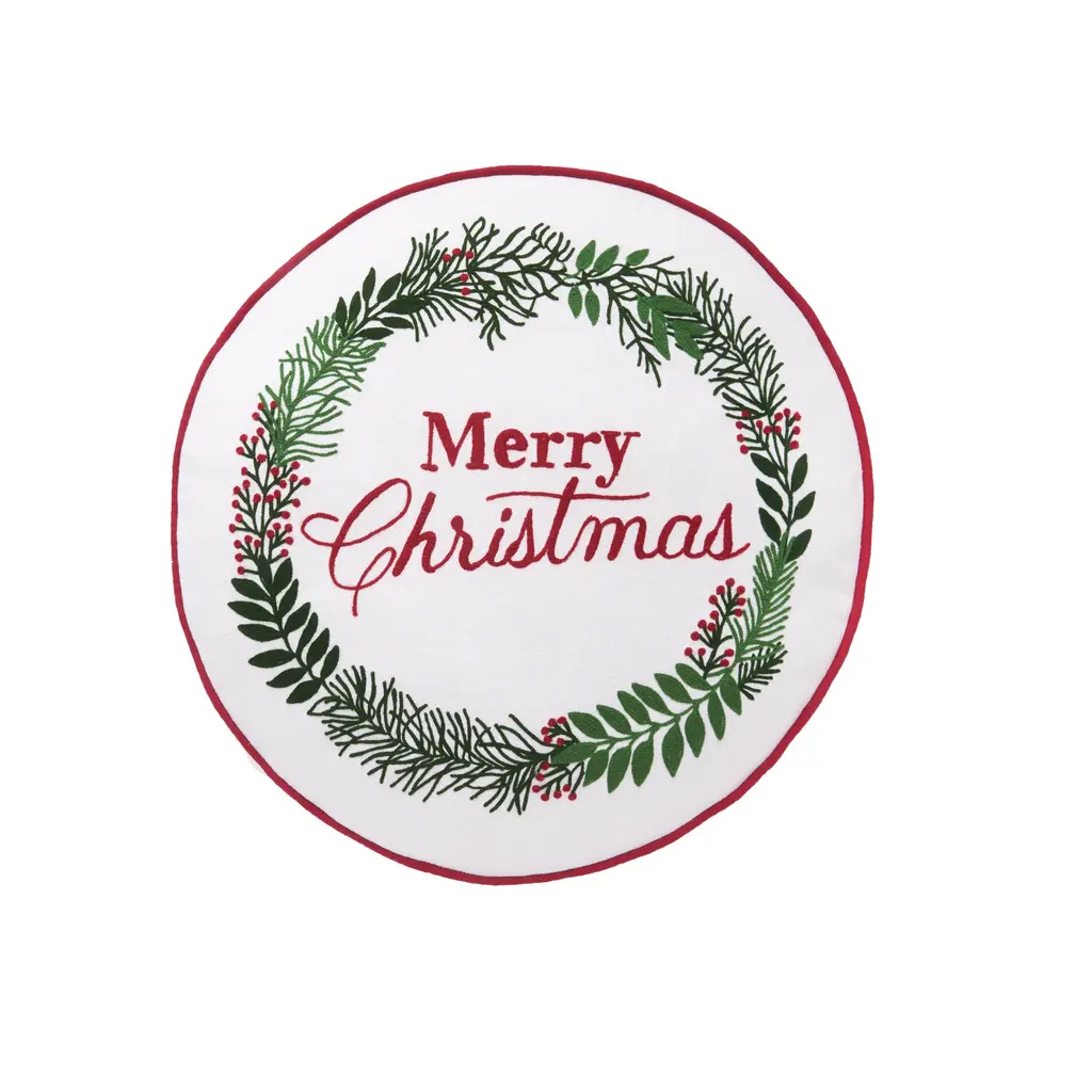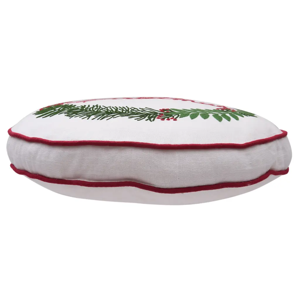 Merry Christmas Berry Wreath Round Pillow - 18 X 18