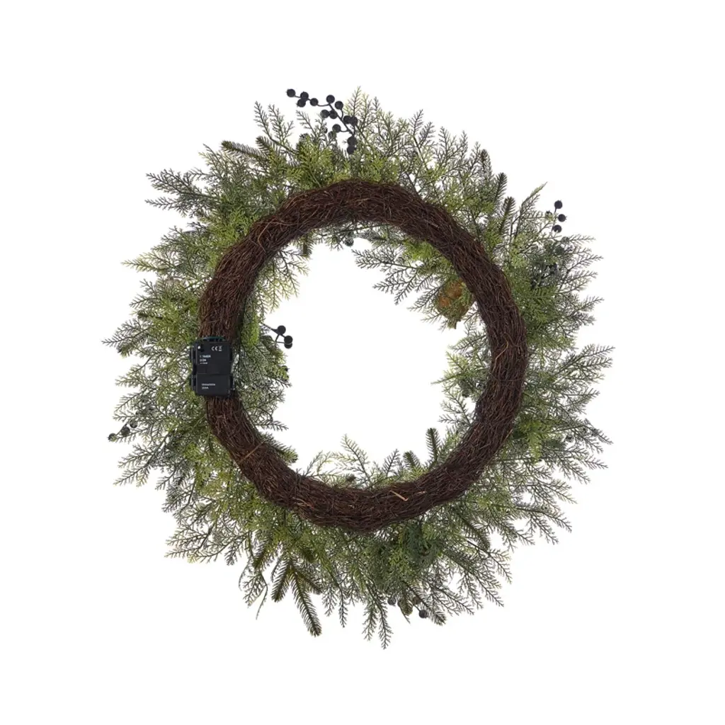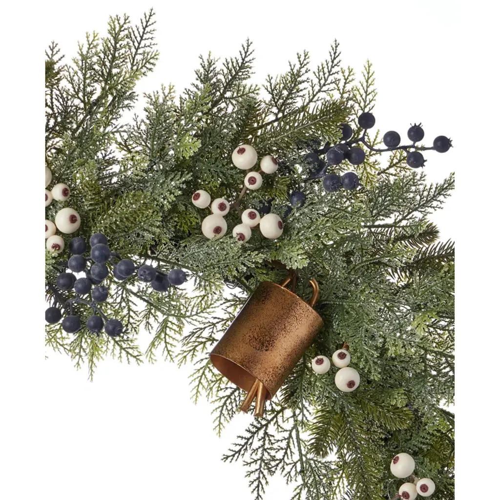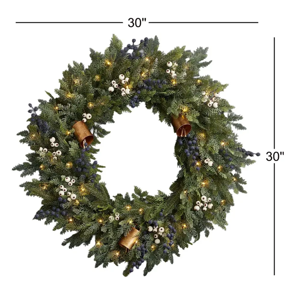 Mixed Mica Foliage With Blueberries And Harmony Bells 30in Wreath Pre-Lit Fairy Lights B/o