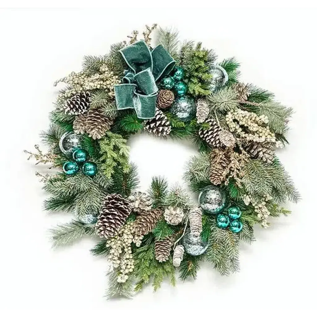 Mixed Pine, Blueberries And Snowy Pine Cones Artificial Christmas Wreath, Unlit