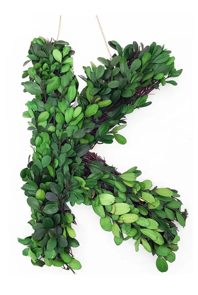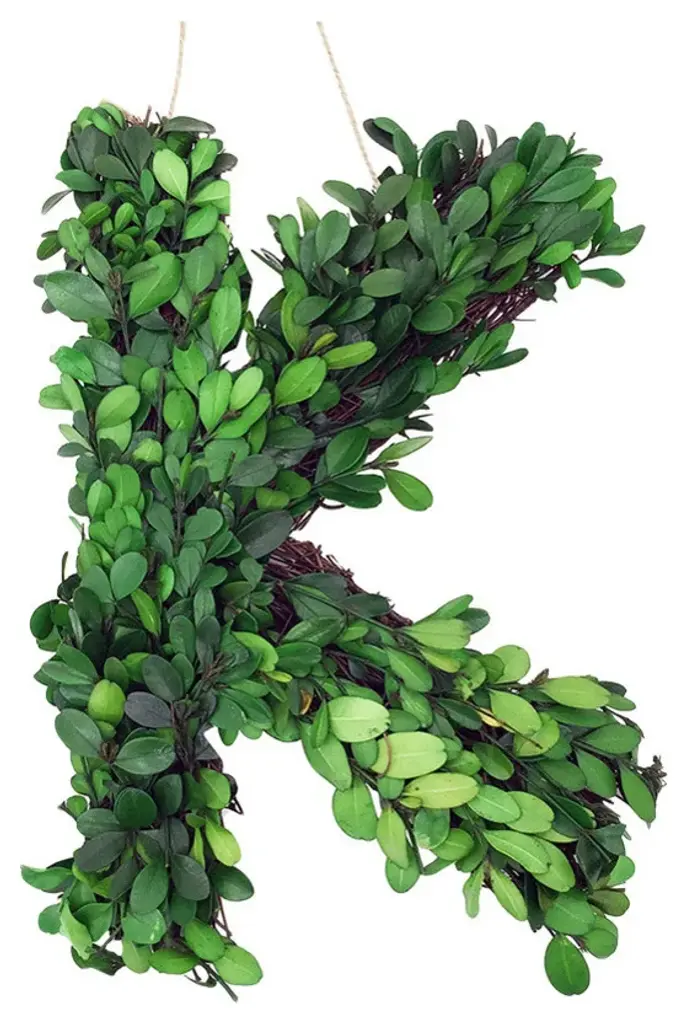 Modern Home 12" Real Preserved Boxwood Monogram Wreath Letters - K