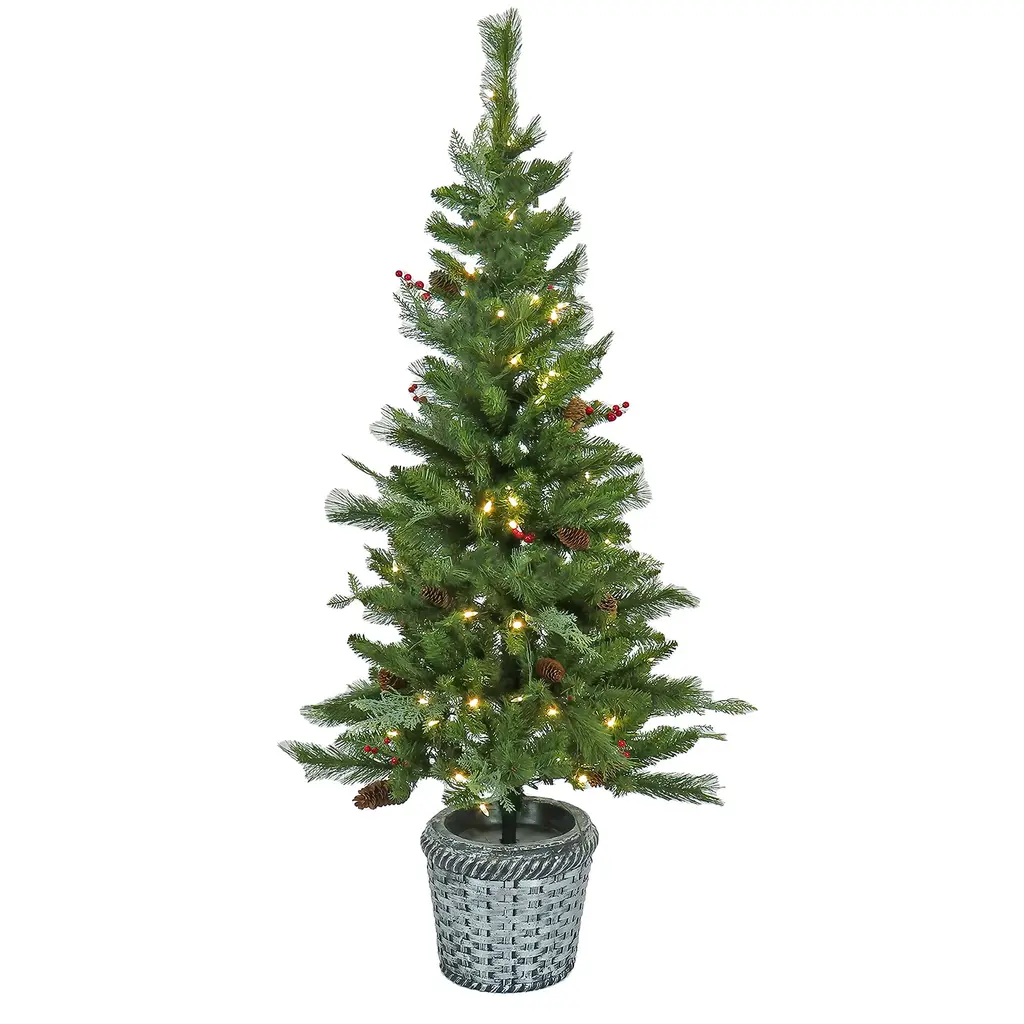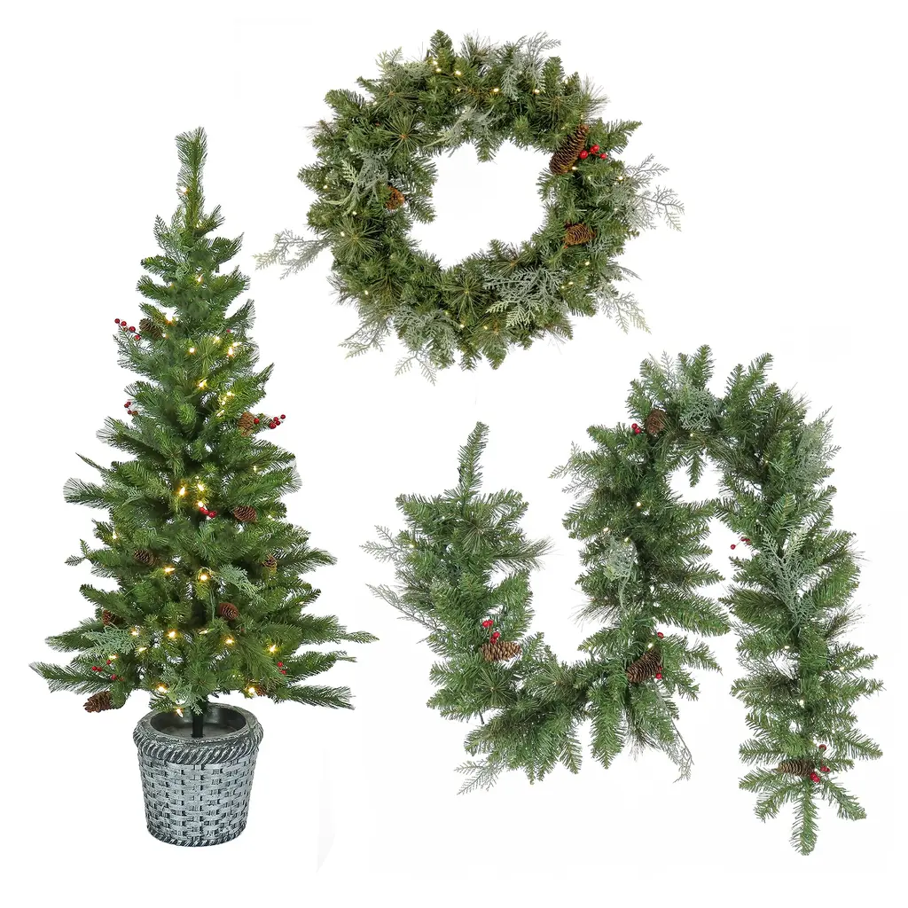 National Tree Company Feel Real Buzzard Pine Pre-Lit Assortment- 5 Ft. Entrance Tree In Pot , 2 Ft. Wreath & 6 Ft. Garland - 5 Foot - Green