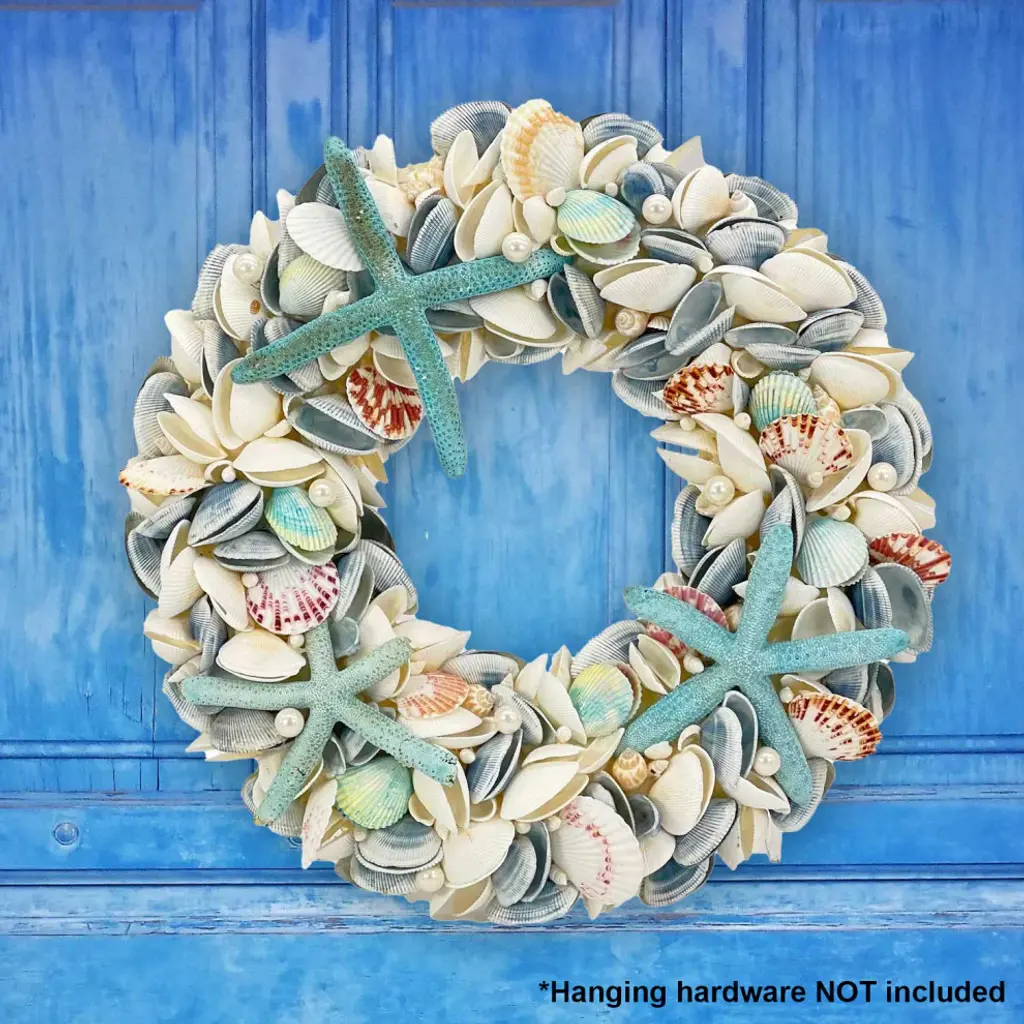 MULTIPLE USE Add this to your front door, wall, kitchen, living room, porch, gate, or garden to welcome in the beachy and summer feel!BEAUTIFUL DESIGN The seashell and starfish wreath will bring the beach life into your space creating an airy sense of living Great for your beach house or island themed area!PERFECT SIZE Measuring approx. 18" in diameter, the wreath is the perfect piece for anything you can think of!� HANGING SUGGESTIONS - We suggest using fishing wire to carefully wrap around the top of wreath to create a hanging point, then use a secure hook to hang (not included). Alternatively, using a loop of ribbon secured around the wreath to hang. (ribbon not included) Hanging hardware not included