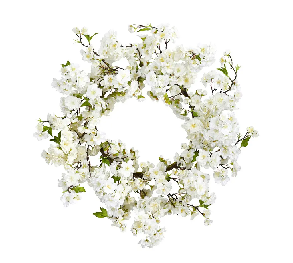 This amaryllis artificial wreath is made up of realistic-looking white flowers with delicate petals. The wreath is 24 inches and completely covered in blooms, making it the perfect piece to hang above your entry table for a bright spring or winter greeting. Hang picture frames on either side for a complete look.