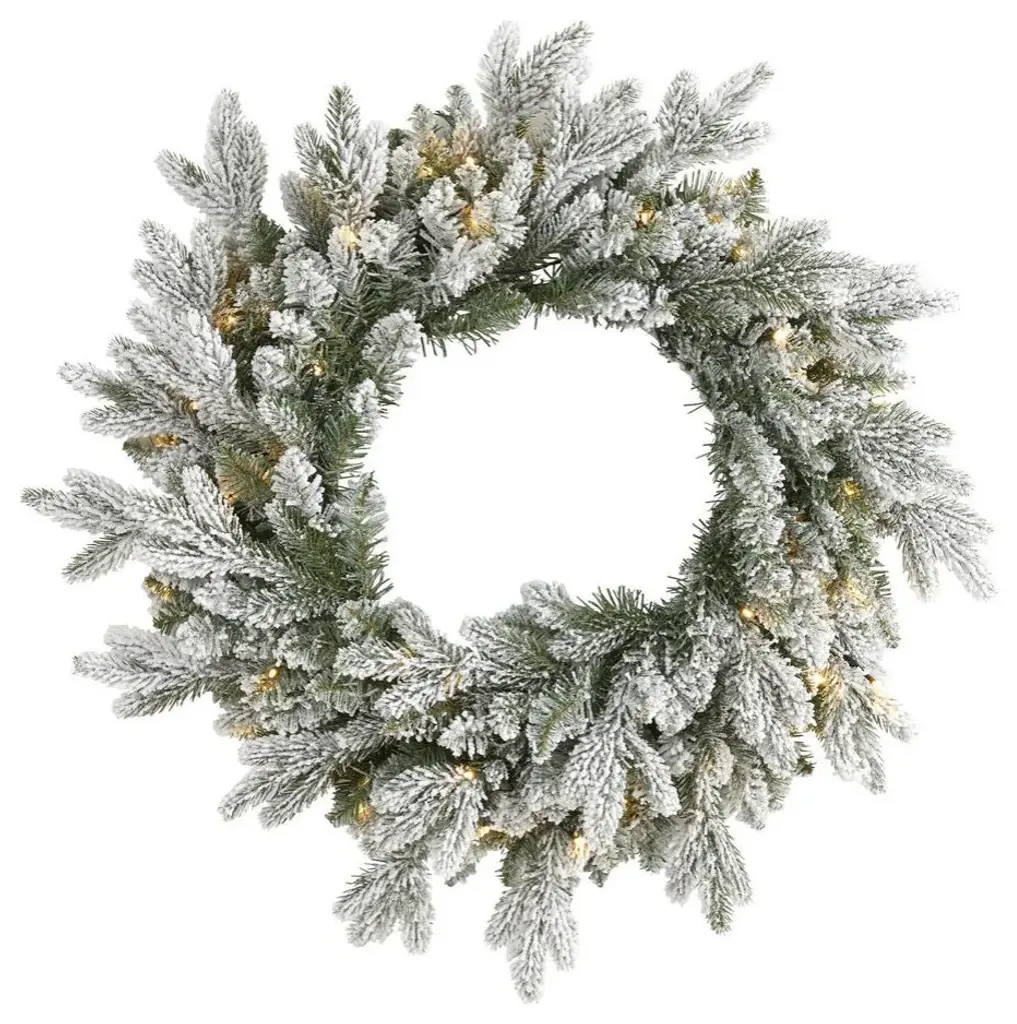 Nearly Natural 24ï¿1⁄2 Flocked Artificial Christmas Wreath With 50 Led Lights