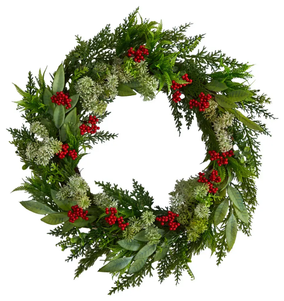 Nearly Natural Nn4362 20" Cedar And Ruscus With Berries Artificial Wreath