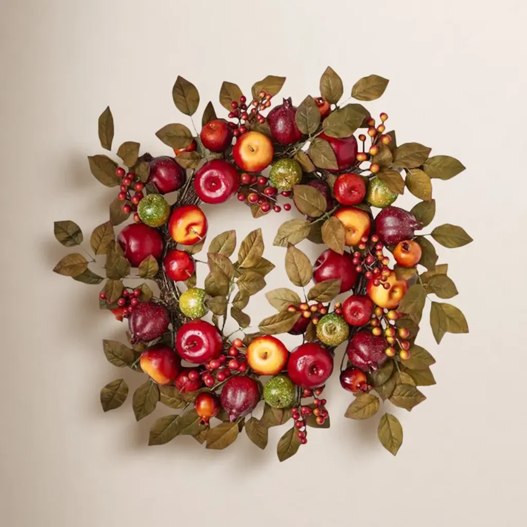 Update your favorite home decor accents while adding a hint of natural beauty to your home or office entrance with this artificial wreath intricately designed with glossy, overlapping maple leaves in fall colors, highlighted throughout with different textures with pinecones and persimmons throughout. A charming, festive accent that evokes Southern charm and elegance, this 26" in diameter decorative wreath would undoubtedly transform a bare wall or doorway with its forever lasting beauty. 26 Autumn Persimmon and Pinecones Artificial Fall Wreath
