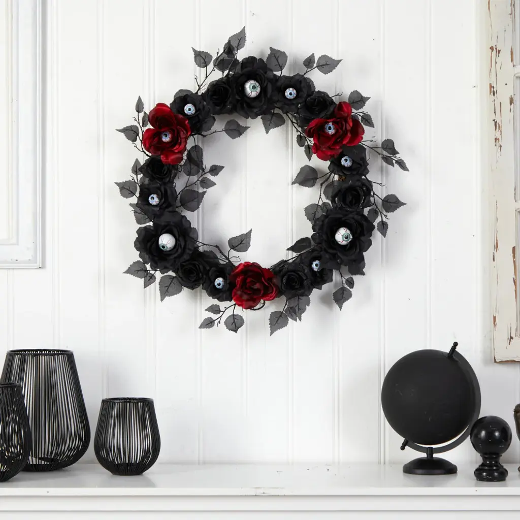 Nearly Natural W1198 24 Eyeball Rose Halloween Artificial Wreath