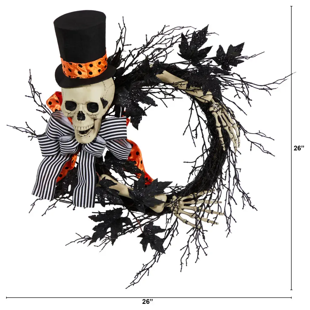 Nearly Natural W1199 26" Halloween Dapper Skeleton Wreath