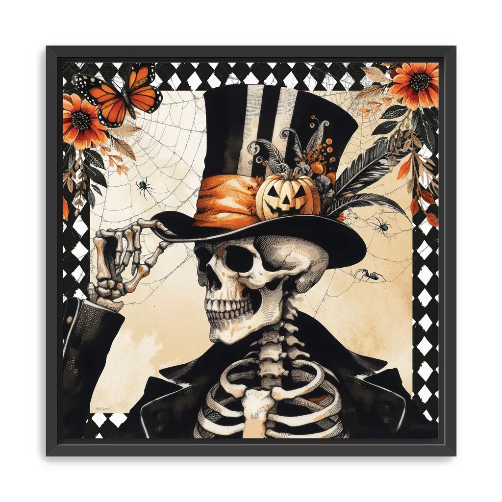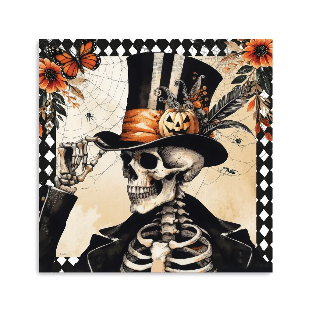 Get spooky this Halloween with the Skeleton Wreath. Have some fun and display your playful personality during the season. Scare the goblins and ghosts with this fun wreath that will be a hit. With a diameter of 26" hang in any area that needs some festive cheer. Mr. Skelton will be waiting for you. 26" Halloween Dapper Skeleton Wreath