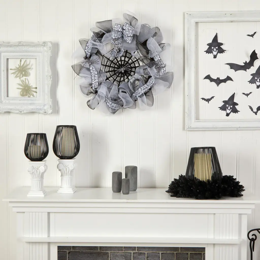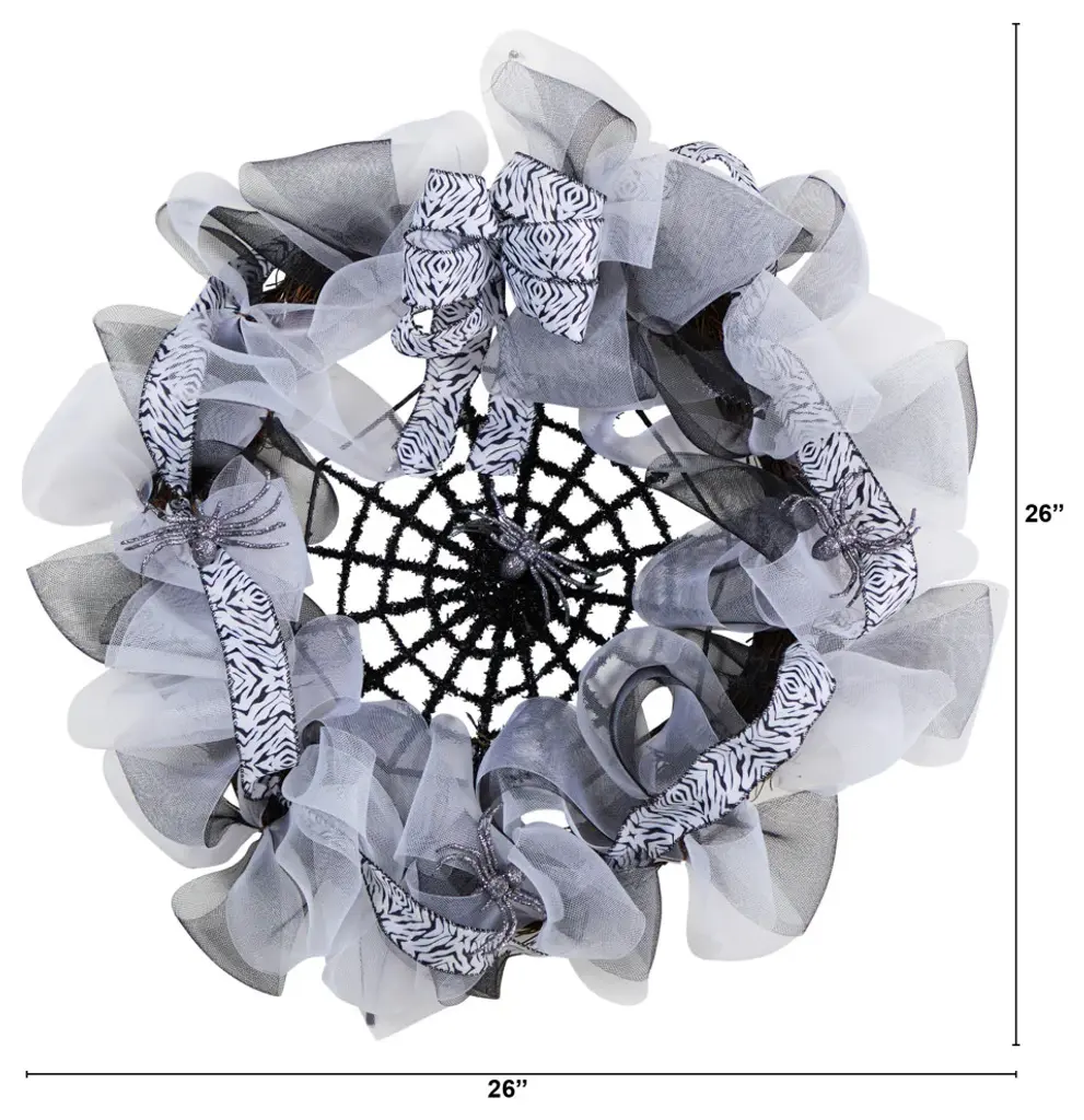 An interesting take on the spider web, you can still be spooky but refined. Decorative bows surround a spider web with a spider in the center. If you still want to have fun but keep things a bit light, you can''t go wrong with this. With a diameter of 26" house in any bare wall or door that needs a festive touch. Makes a great gift too. 26 Halloween Spider Web Mesh Wreath