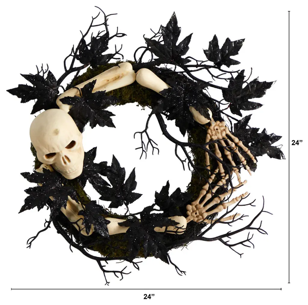 Nearly Natural W1206 24" Halloween Skull And Bones Wreath