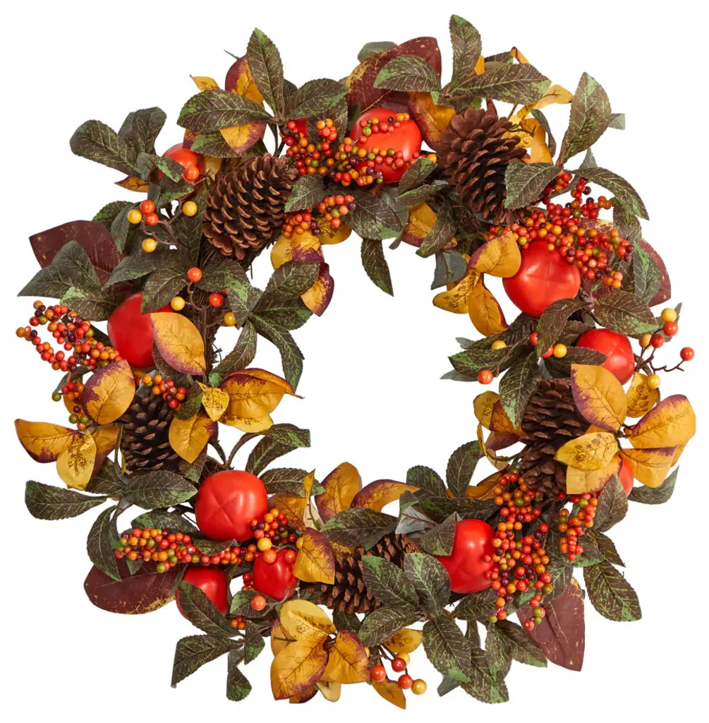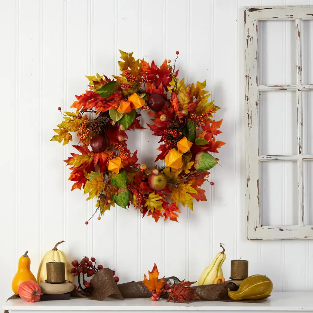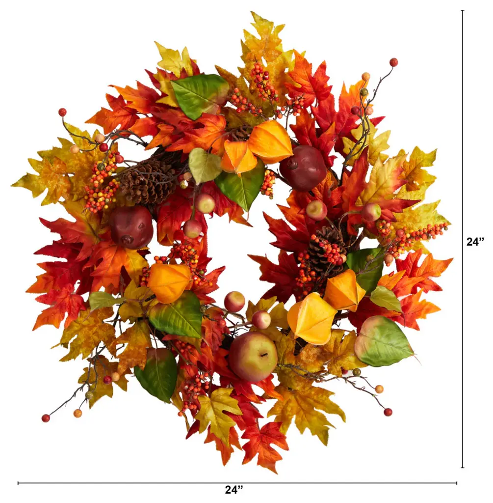 Nearly Natural W1232 24 Autumn Maple Leaf And Berries Fall Artificial Wreath