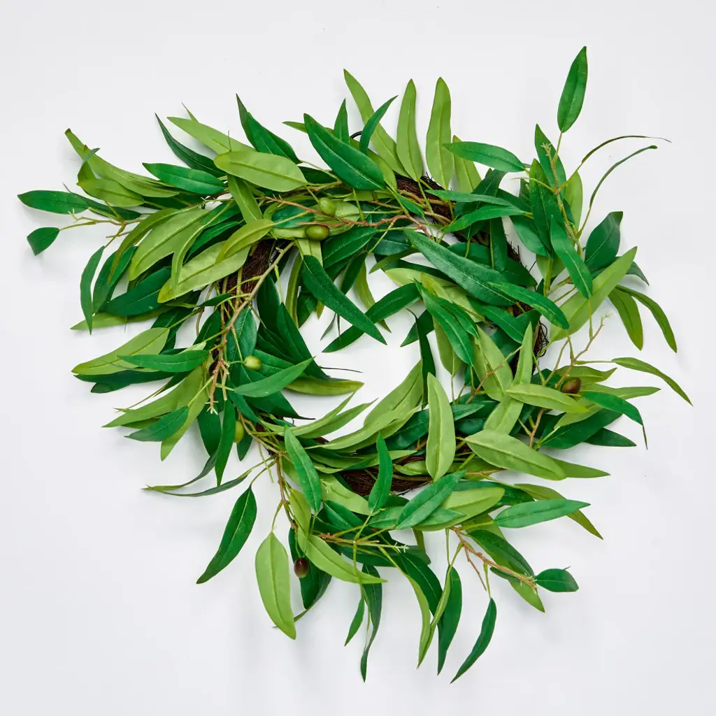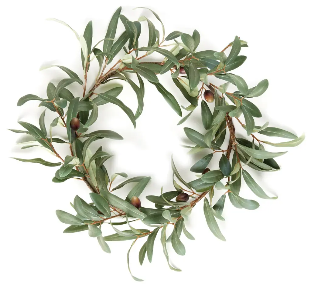 Welcome nature into your home with the Olive Leaf Foliage Wreath. Lush green olive leaves and rustic twig accents bring a fresh, organic touch to your decor. The high-quality polyester foliage and sturdy grapevine twig base ensure lasting beauty, making it the perfect seasonal or year-round accent. Whether hung on a front door, entryway, or mantel, this stunning wreath adds warmth and elegance to any space. Suitable for indoor or covered outdoor use.