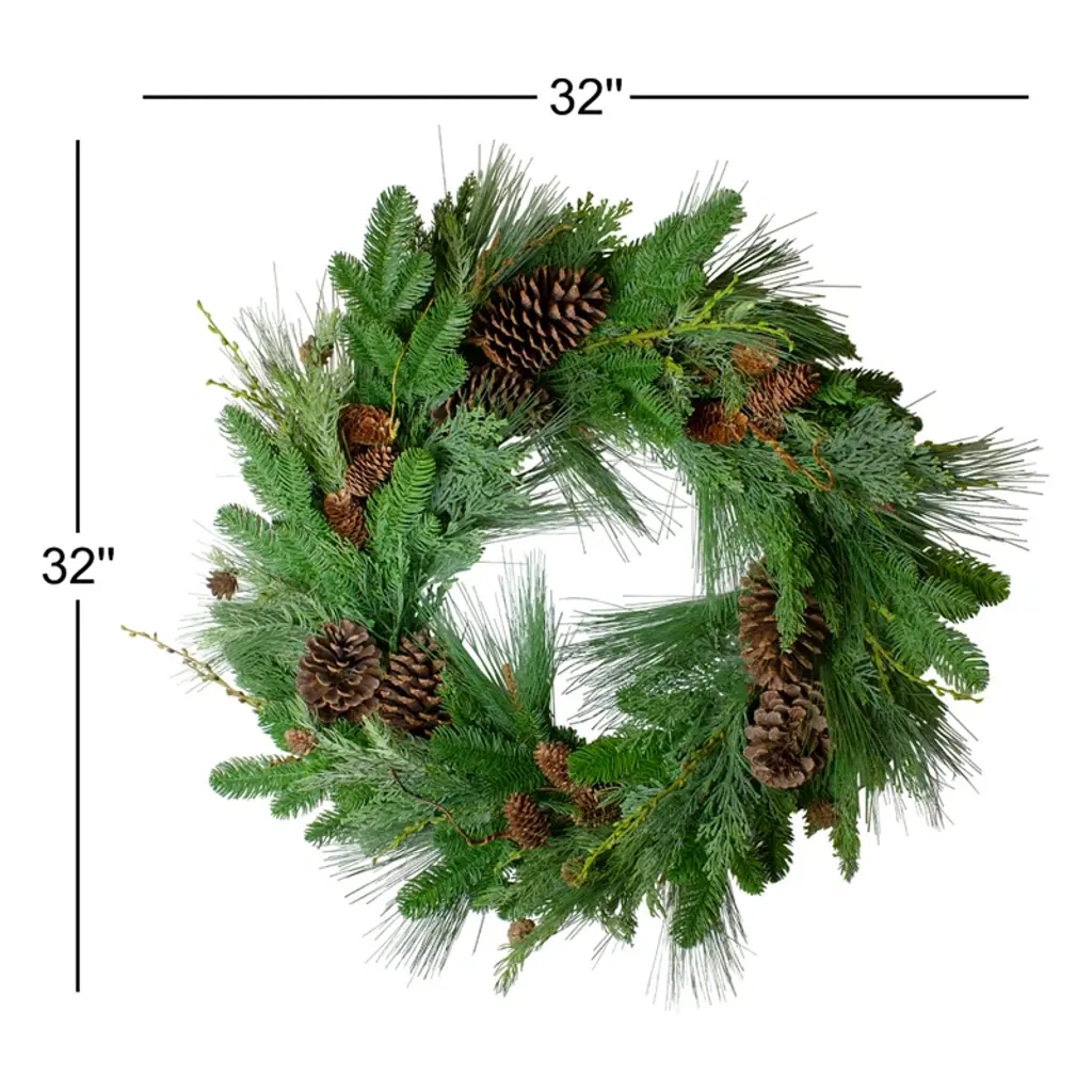 Pine Cone And Cedar Artificial Christmas Wreath - 32-Inch Unlit