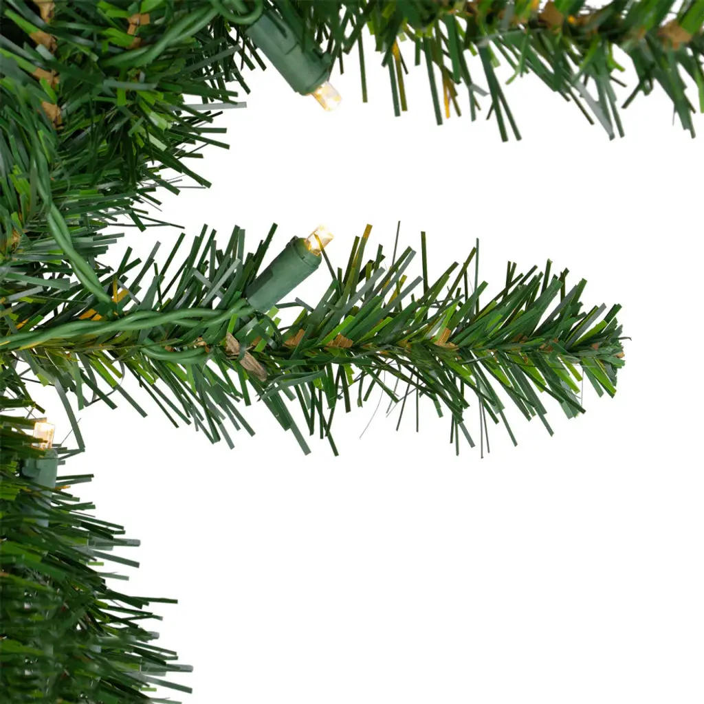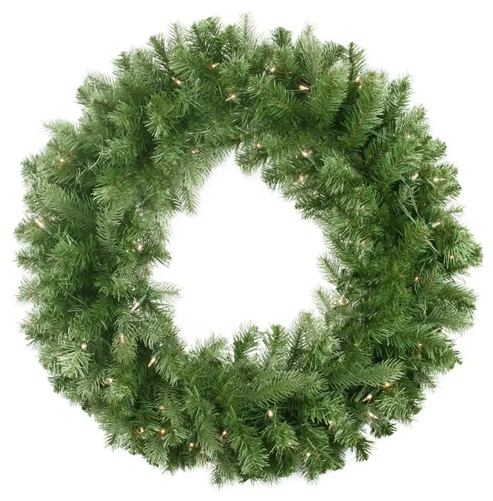 Add this beautiful Buffalo Fir wreath to your holiday and winter decor for a traditional feel and glow. It is beautifully designed with a mix of lush green foliage and warm white lights. Make it more festive by adding ornaments sprays ribbons or lights. Features: Pre-lit with 200 warm white LED lights "Warm white" also known as "warm clear" has a nice natural warm incandescent like glow similar to candlelight Bulb size: concave wide angle 330 tips 1.75" - 2" wide tapered tips 24" green lead cord Easy assembly wreath comes in 1 pieces with replacement bulbs included Heavy duty double metal ring frame backing for hanging Additional Product Features: LED lights use 90% less energy Durable non-glass replaceable bulbs Cool to the touch If one bulb burns out the rest will stay lit Light sets on tree are UL listed for indoor or outdoor use however the wreath itself is recommended for indoor use Lights are equipped with Lamp Lock feature which makes them replaceable interchangeable and keeps them from falling out Contains 1 plug with end connector which allows you to stack multiple plugs on top of each other (not to exceed 210 watts) Comes with replacement bulbs and fuses Wire gauge: 22 120 volts 60 hertz .04 amps 4.8 watts Dimensions: 48" diameter (measured from outermost tip to outermost tip across the wreath) Inner ring dimensions: between 32" - 36" Material(s): PVC/wire/metal/plastic bulbs