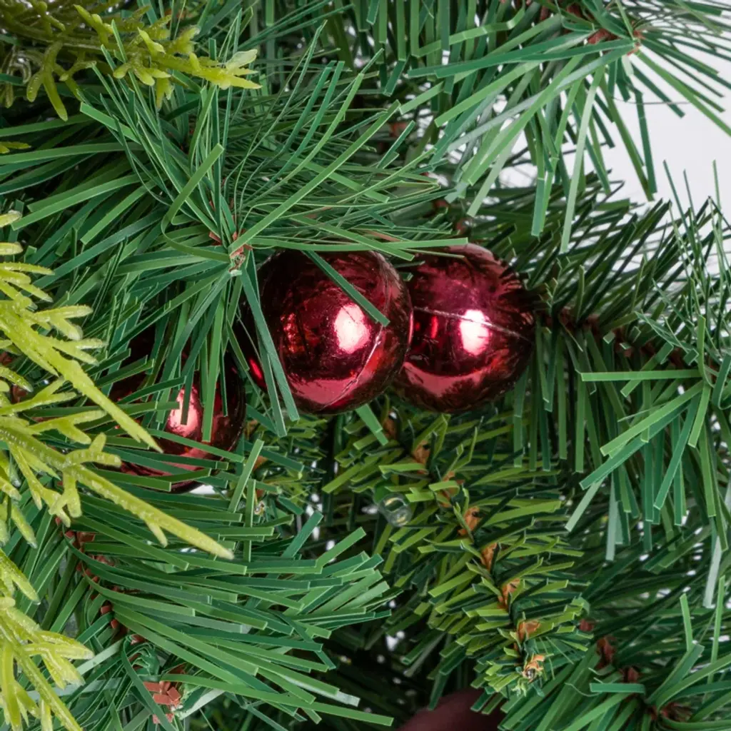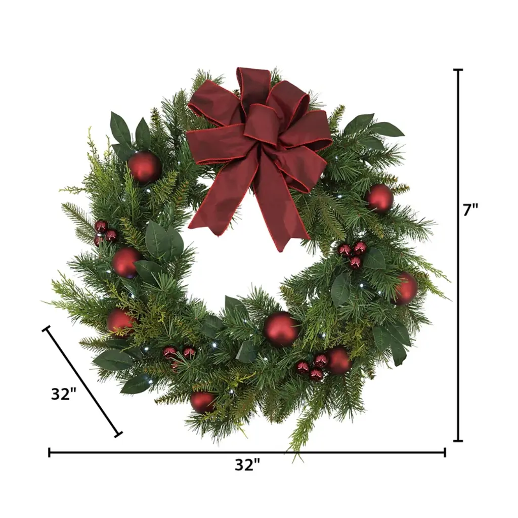 No Christmas decorating is complete without the tradition of displaying a beautiful wreath to announce the holidays and welcome guests into your home, and this lit wreath is breathtaking. Many layers of cedar branches are crafted with eye-catching frosted red balls, and a matching top bow to add a brilliant pop of color. Ready to be hung on your door, wall, or fireplace., this cedar wreath will instantly spruce up your holiday decor and add a hearth-and-home feel.
