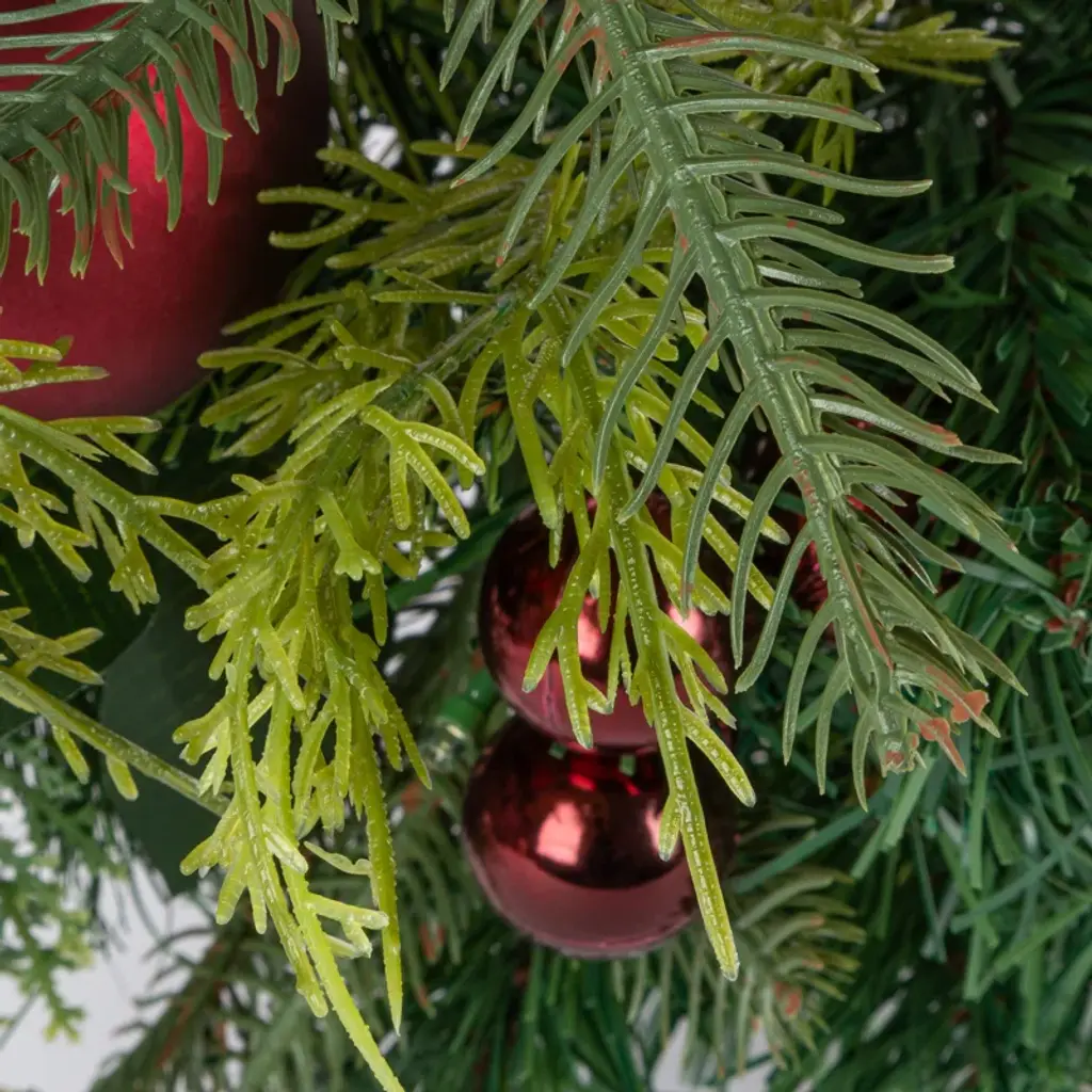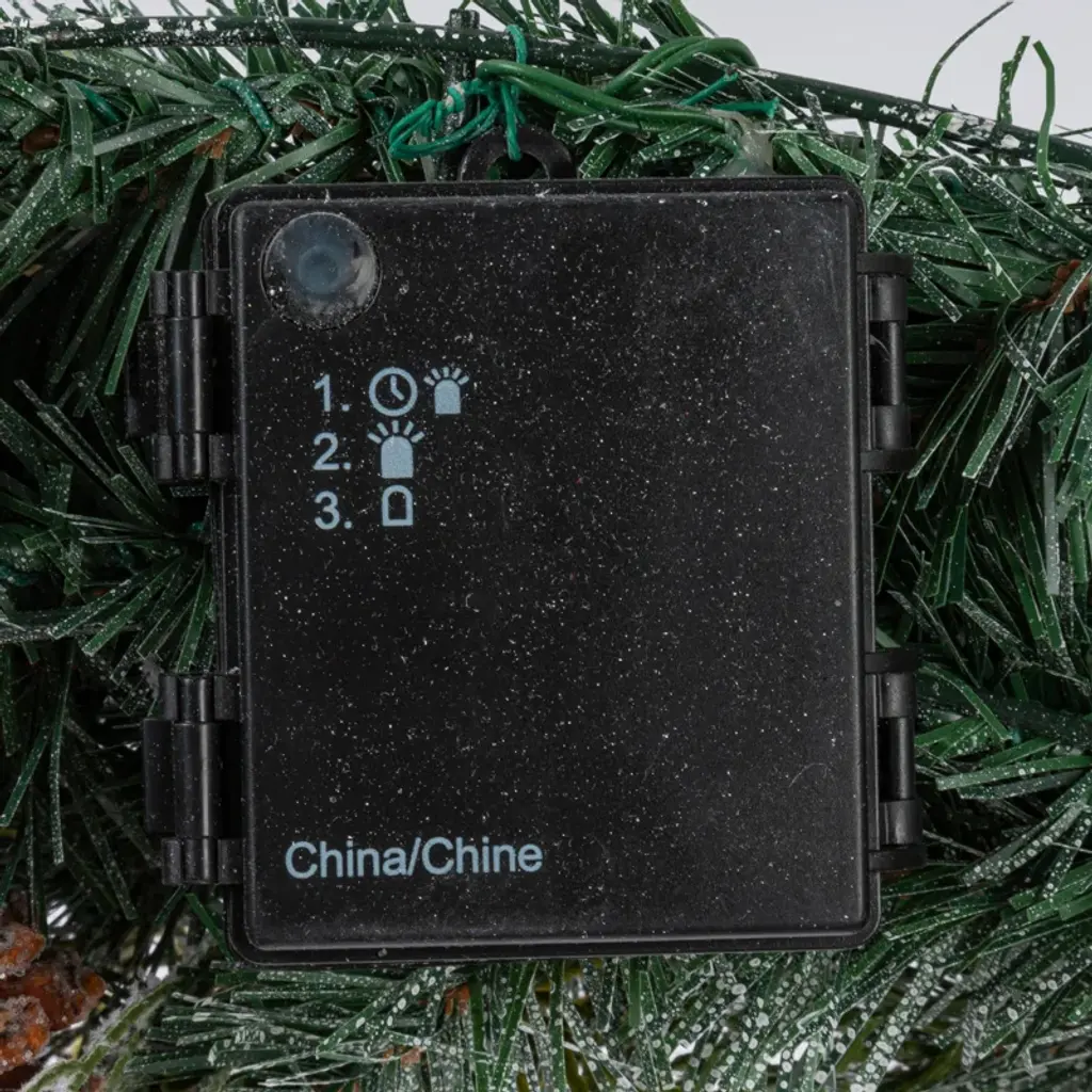 Many layers of cedar branches with a snow-kissed frost are crafted with a twig frame for sturdy construction. Pine cones add a touch of nature, while the lights add an extra touch of holiday spirit. Ready to be hung on your door, wall, or fireplace, this wreath will instantly spruce up your holiday decor and add a hearth-and-home feel. Convenient 6-hour timer.