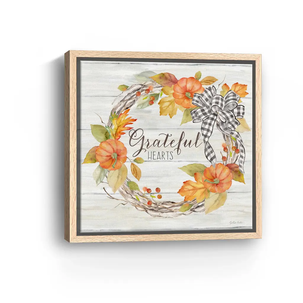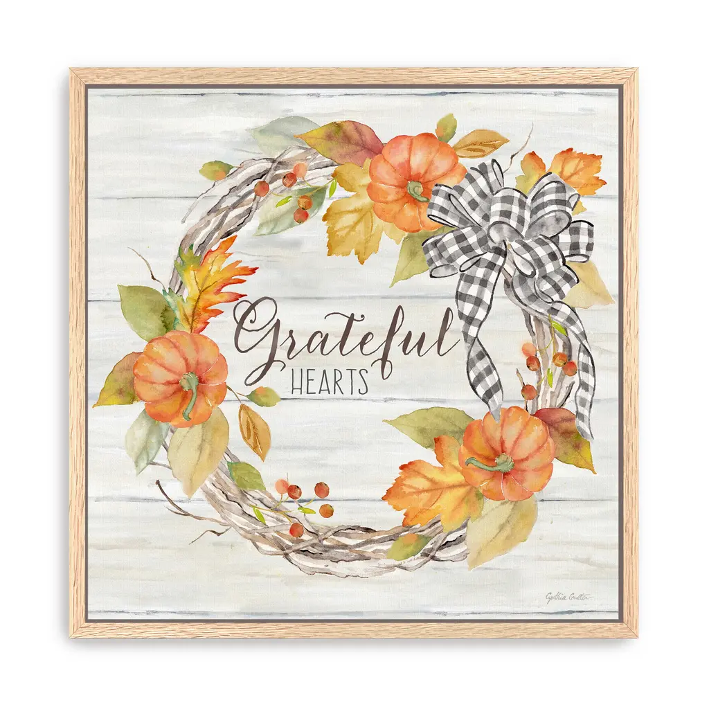 Pumpkin Patch Wreath Ii Grateful Canvas Giclee - Framed / Black / 40x40