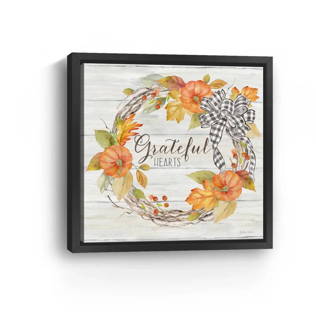 Pumpkin Patch Wreath Ii Grateful Canvas Giclee - Framed / Oak / 20x20