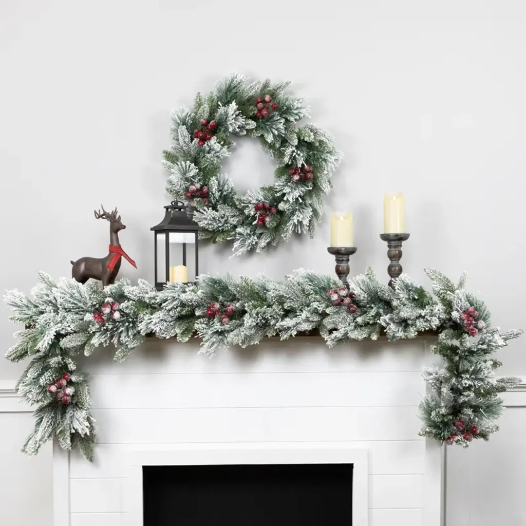 For the most realistic artificial Christmas wreaths around choose Northlight Real Touch™️ artificial Christmas wreaths. Experience the timeless charm of our Calloway fir wreath. Delight in its realistic design elegantly flocked with red berry accents that capture the essence of a winter wonderland. Perfect for adding a festive touch to your holiday decor effortlessly.