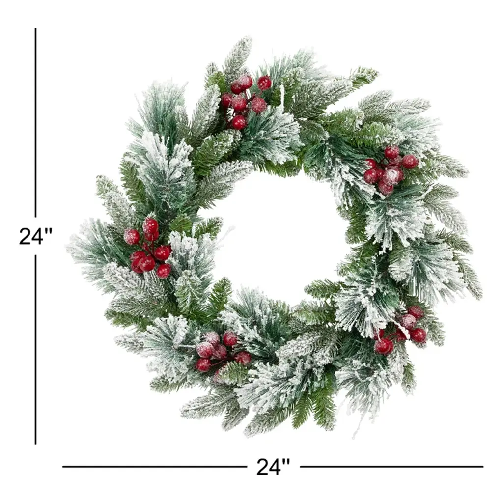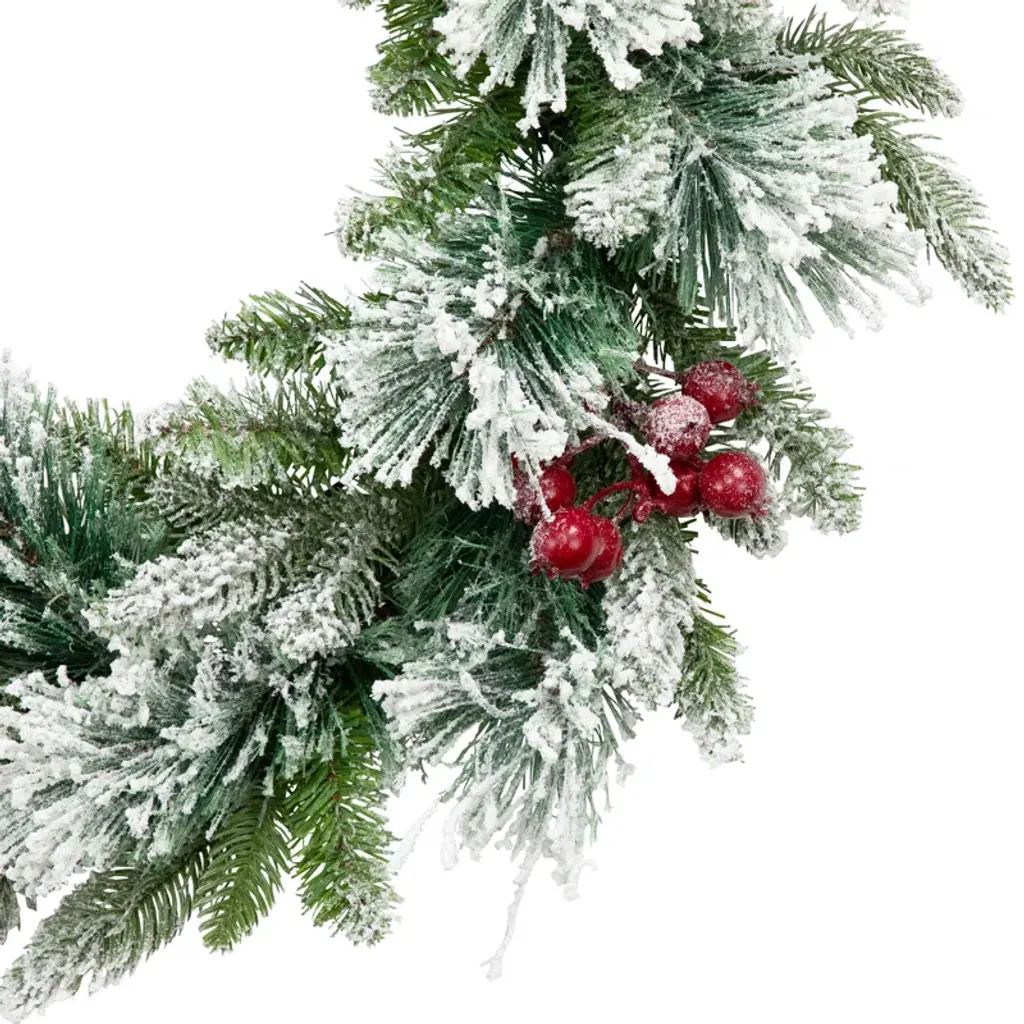 Real Touch Flocked Calloway Fir With Berries Artificial Christmas Wreath - 24" - Unlit