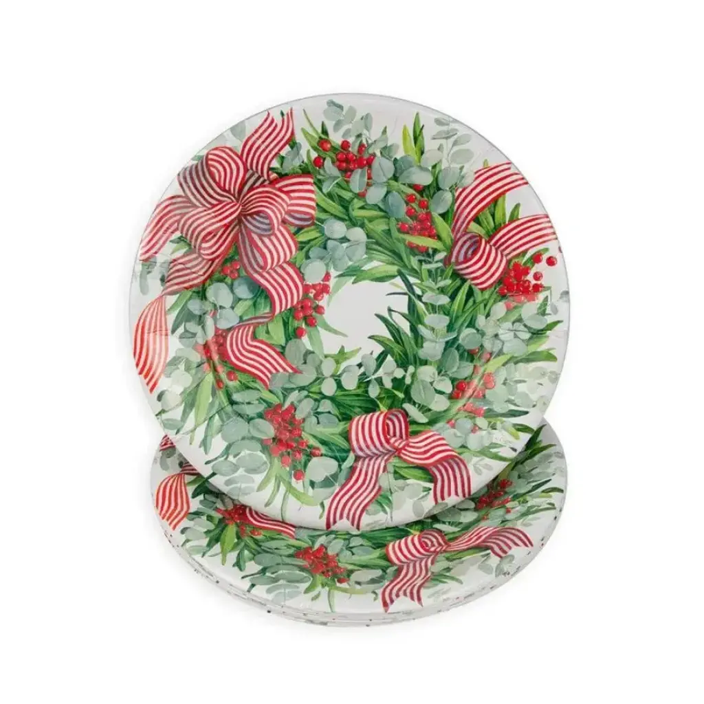 Ribbon Stripe Wreath Paper Dinner Plates, 8 Per Pack