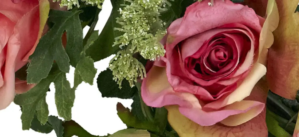The rose is often seen as the "perfect" flower. One look at the full, lush blooms, and you can see why. Well, we've taken those perfect blooms and created this exquisite 20" rose artificial wreath that has to be seen to be believed. Full rose blooms circle round', while the leaves and stems provide the ideal backdrop. It's a mixture of bold color and "wild vibrancy" that is sure to please even the most discerning eye.