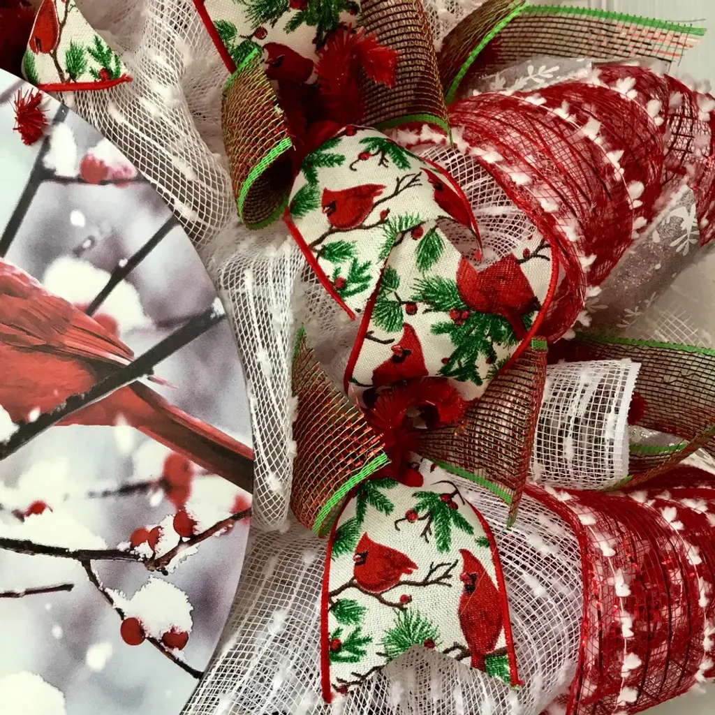 Santa Ho Ho Ho Christmas Wreath Handmade Deco Mesh With Cardinal And Tiny Bells