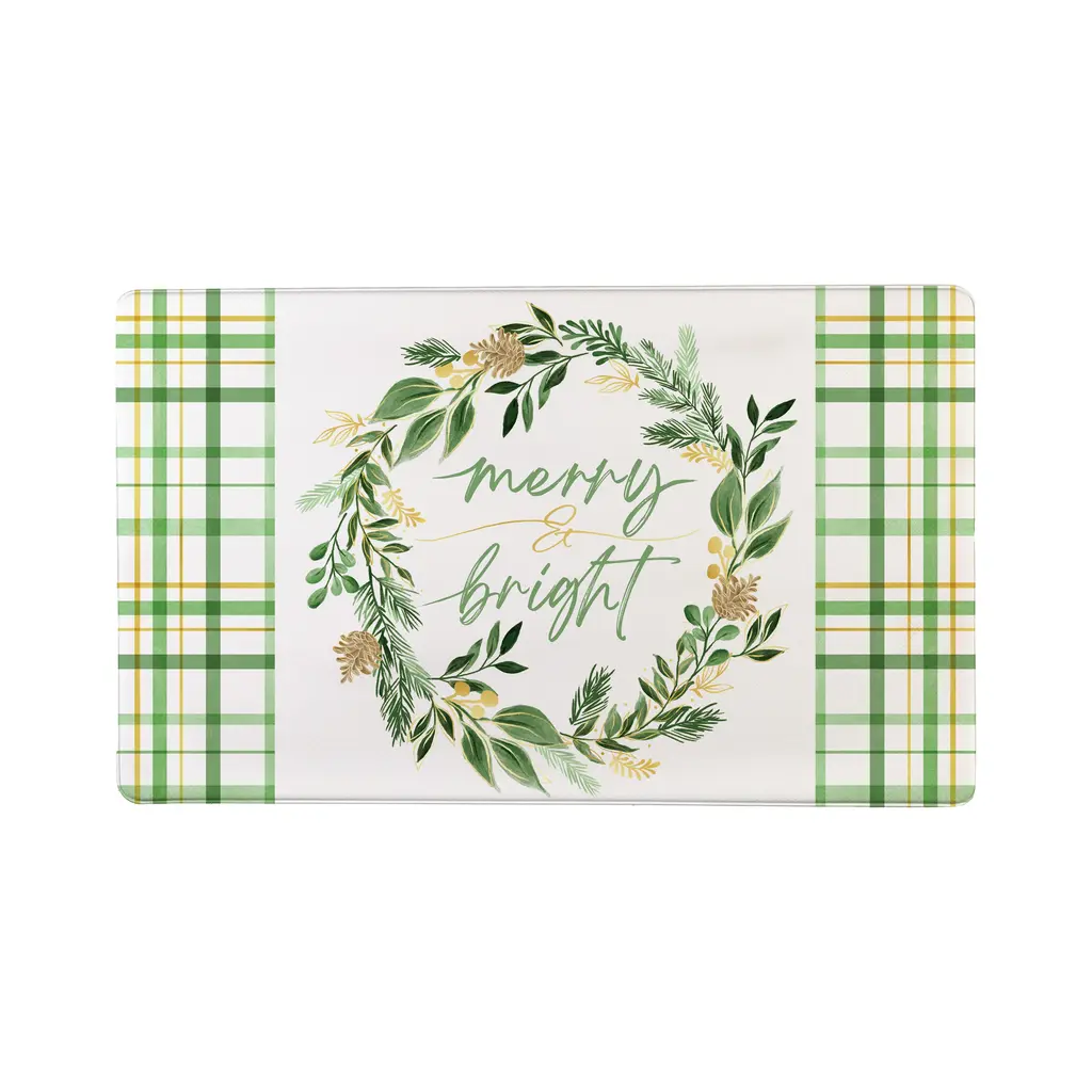 Shades Of Green Wreath Anti-Fatigue Mat, "Merry Bright", 30"x18”