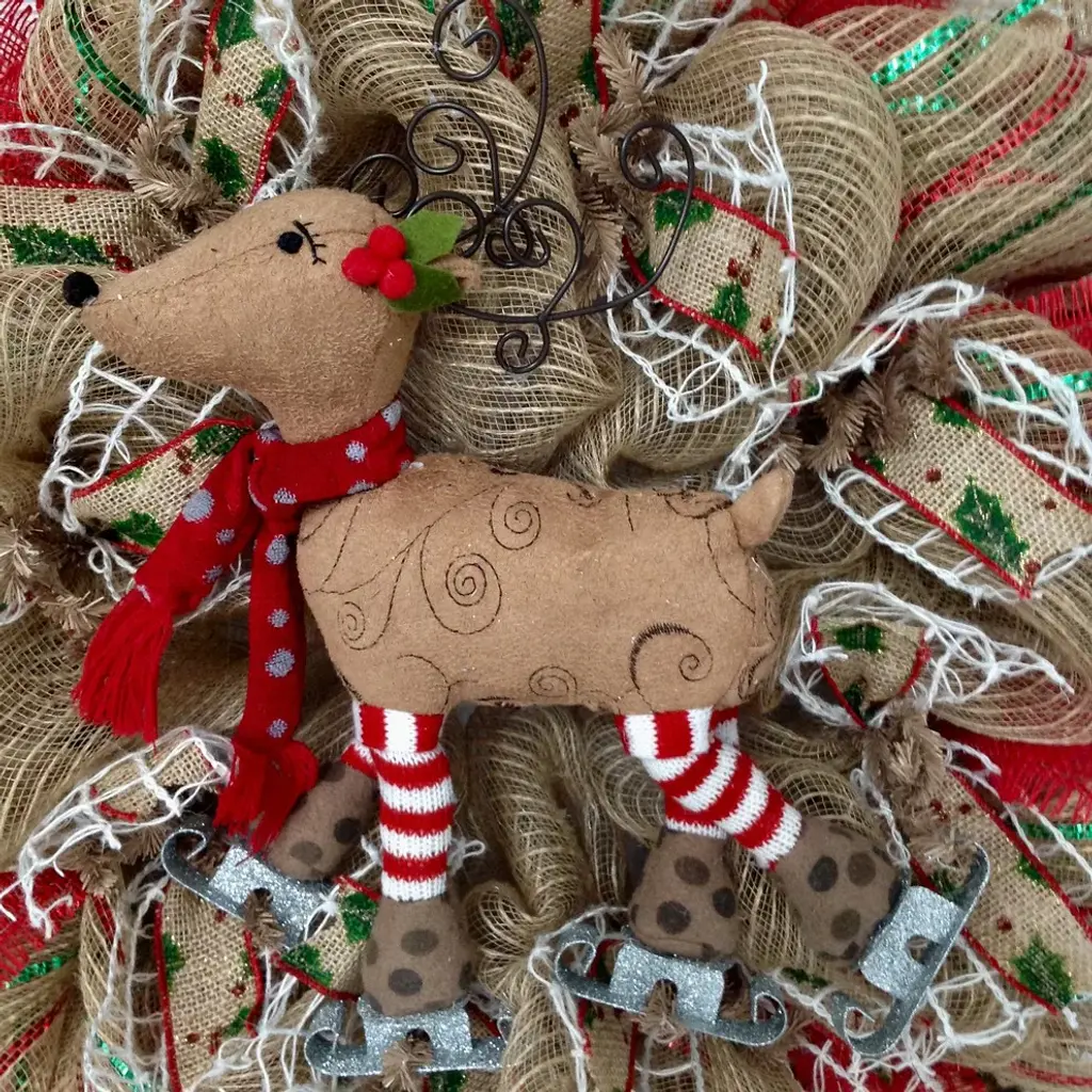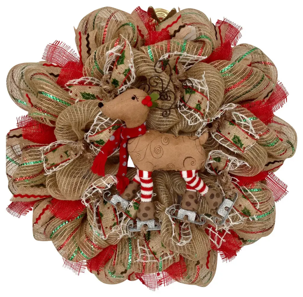 Skating Reindeer Handmade Deco Mesh Winter Holiday Wreath
