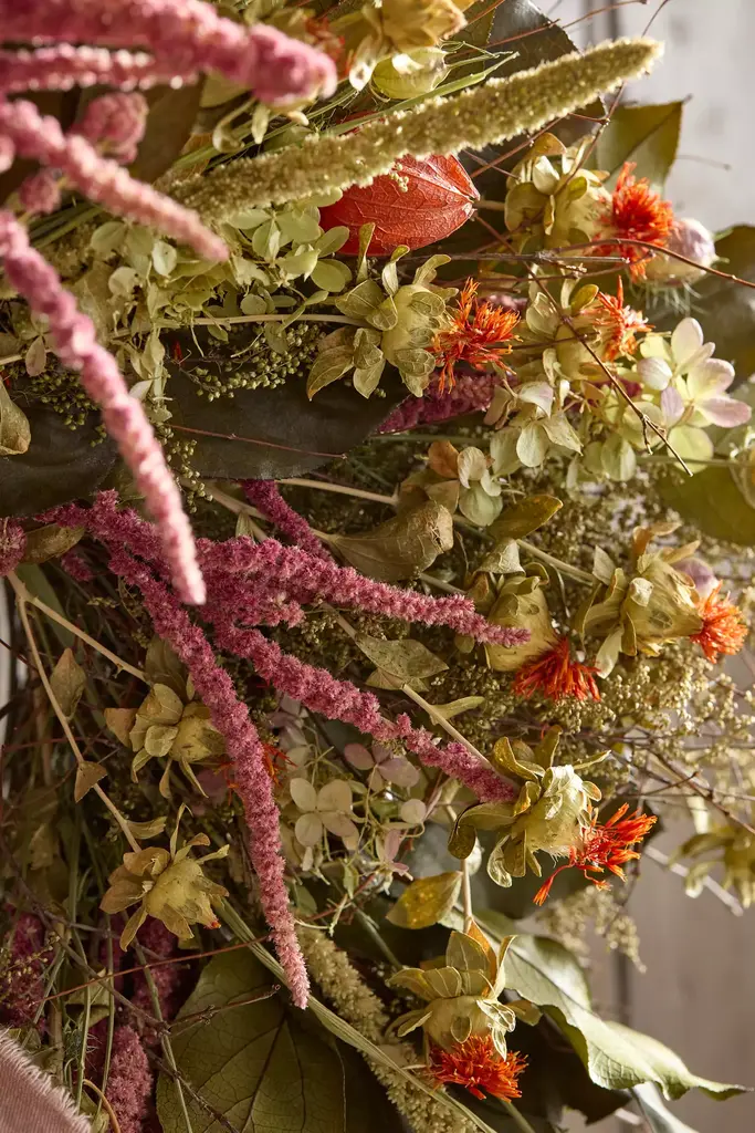 Handmade especially for terrain with botanicals grown and harvested on a woman-owned farm in the Pacific Northwest, this long-lasting wreath brings home a palette of lush greens and vibrant hues.