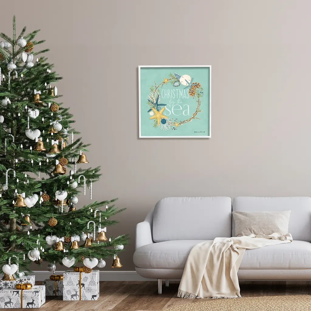 Add dimension to any room with our textured Framed Giclee Artwork. Our framed artwork is securely mounted into a 1.5-inch thick wood grain frame and ready to hang. Frames are available in three alluring styles: black, gray farmhouse and white. In addition, you should check out our oversized options if you want a statement piece. Stupell Wall Art is made in the USA.Features: Dimensions: 12 x 1.5 x 12 FramedFramed Giclee Sizes Include Standard: 12 x 1.5 x 12 Large: 17 x 1.5 x 17 Oversized: 24 x 1.5 x 24Wall Art is Ready to Hang - No Installation or Hardware Needed. For Easy Set Up Lean or Layer Artwork on Shelf or Against Wall.Our giclée prints are carefully mounted on a durable MDF backing, and then perfectly finished in a 1.5 inch thick woodgrain frame. Mounted frame colors include black, gray farmhouse and white. Made In USA.Artwork Relates To: Sea Life, Clam, Nautical, Starfish, Turquoise, Christmas, Holiday, Winter, Christmas By The SeaDesign by Stephanie Workman Marrott
