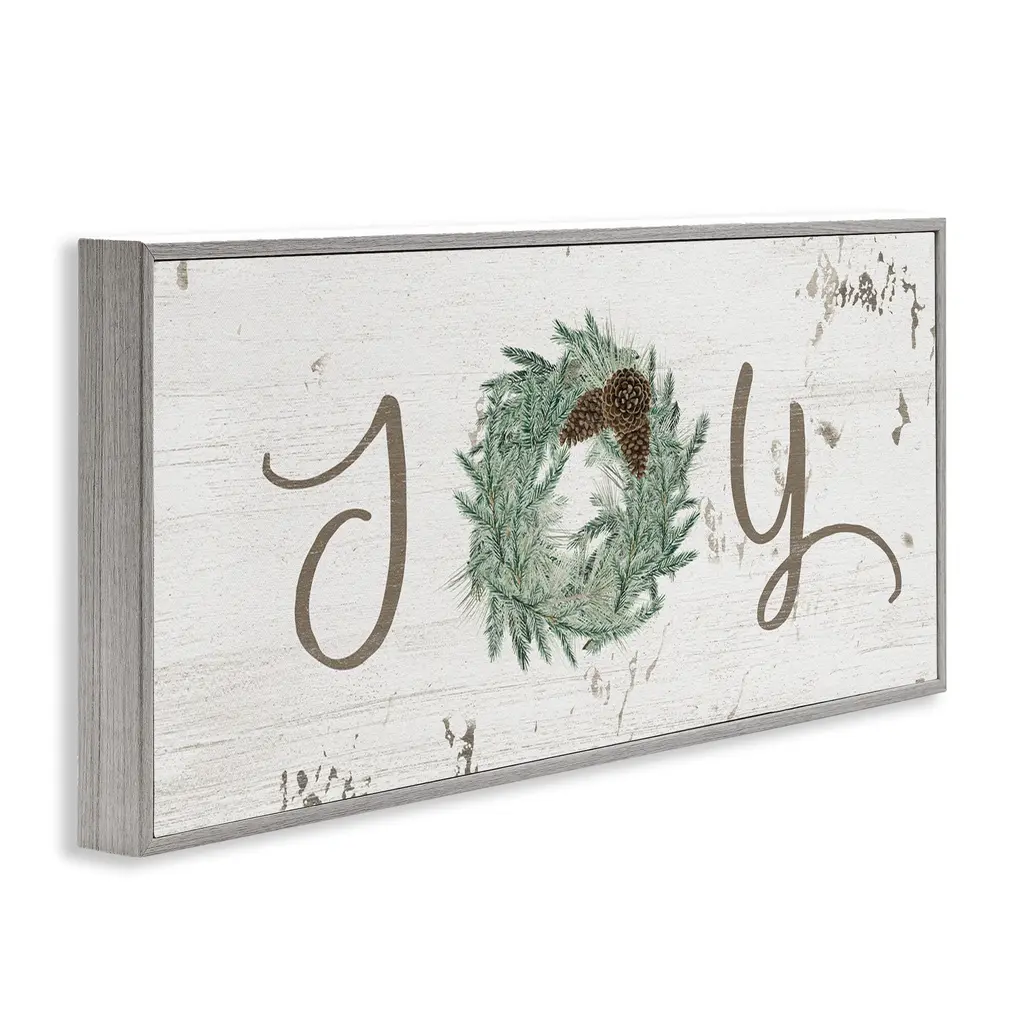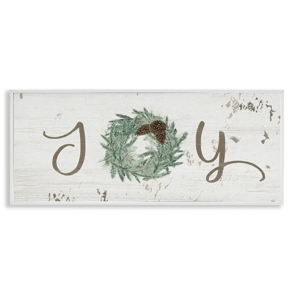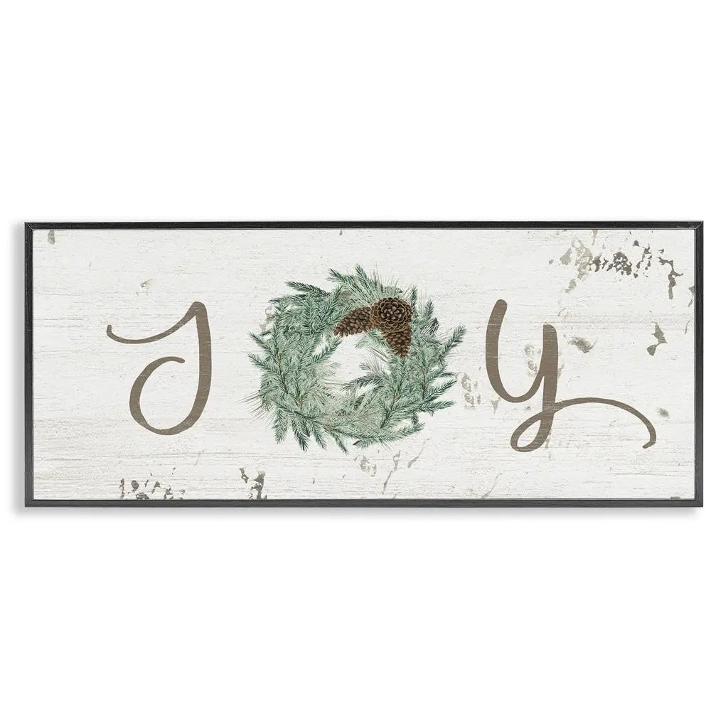 Add dimension to any room with our textured Framed Giclee Artwork. Our framed artwork is securely mounted into a 1.5-inch thick wood grain frame and ready to hang. Frames are available in three alluring styles: black, gray farmhouse and white. In addition, you should check out our oversized options if you want a statement piece. Stupell Wall Art is made in the USA.Features: Dimensions: 24 x 1.5 x 10 FramedFramed Giclee Product Sizes include 24"x10" and 30"x13". All Framed Giclee products have a 1.5" Depth.Wall Art is Ready to Hang with Hardware Free Hanging. No installation required. For Easy Set Up Lean or Layer Artwork on Shelf or Against Wall.Our giclée prints are carefully mounted on a durable MDF backing, and then perfectly finished in a 1.5 inch thick woodgrain frame. Mounted frame colors include black, gray farmhouse and white. Made In USA.Artwork Relates To: Holiday, Winter, Christmas, Seasonal, Joy, Pinecone, BotanicalDesign by Grace Popp