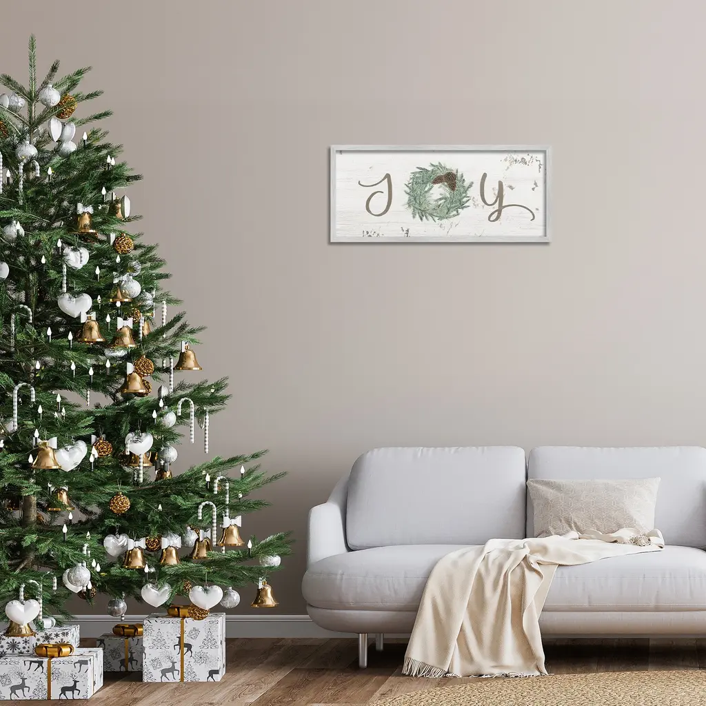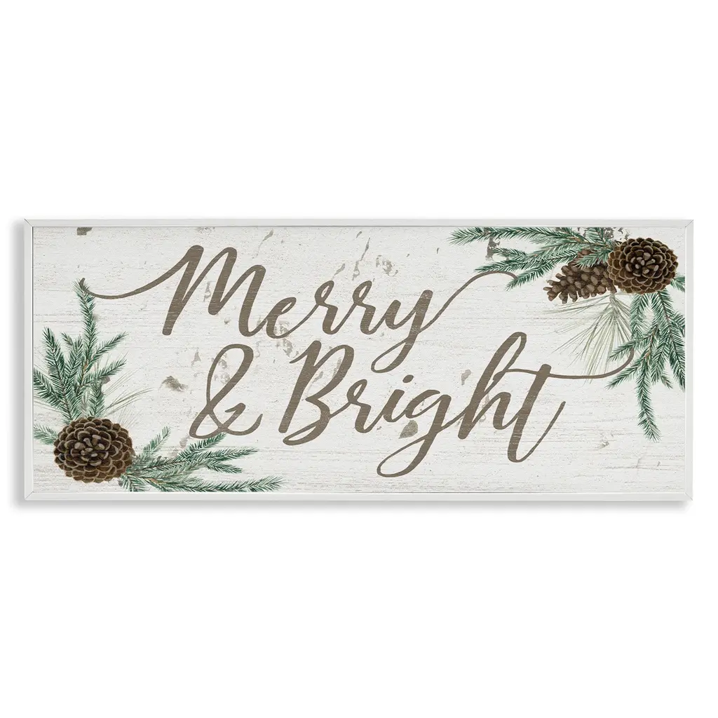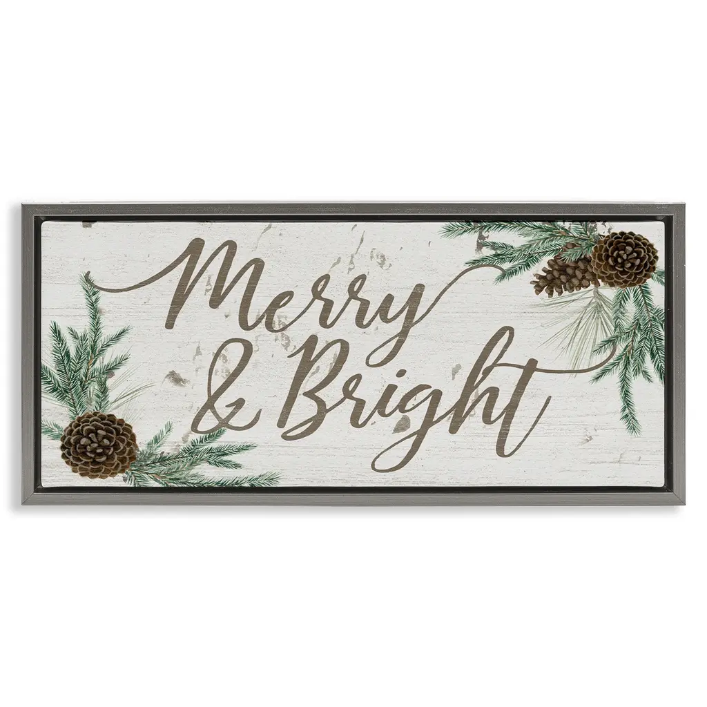 Add dimension to any room with our textured Framed Giclee Artwork. Our framed artwork is securely mounted into a 1.5-inch thick wood grain frame and ready to hang. Frames are available in three alluring styles: black, gray farmhouse and white. In addition, you should check out our oversized options if you want a statement piece. Stupell Wall Art is made in the USA.Features: Dimensions: 24 x 1.5 x 10 FramedFramed Giclee Product Sizes include 24"x10" and 30"x13". All Framed Giclee products have a 1.5" Depth.Wall Art is Ready to Hang with Hardware Free Hanging. No installation required. For Easy Set Up Lean or Layer Artwork on Shelf or Against Wall.Our giclée prints are carefully mounted on a durable MDF backing, and then perfectly finished in a 1.5 inch thick woodgrain frame. Mounted frame colors include black, gray farmhouse and white. Made In USA.Artwork Relates To: Holiday, Winter, Christmas, Seasonal, Joy, Pinecone, BotanicalDesign by Grace Popp