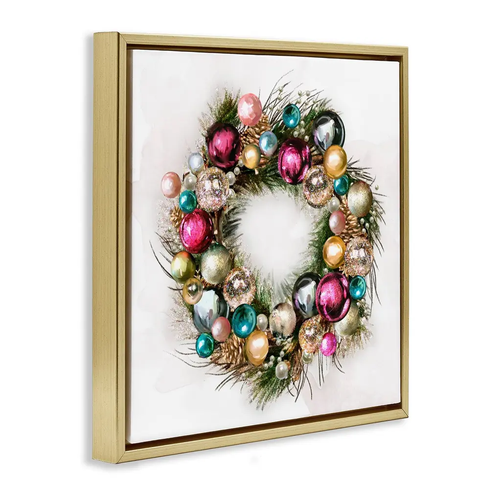 Elevate your home or office to the next level with Stupell Framed Floating Canvas Wall Art. Our premium hand-stretched canvas is mounted securely into a sturdy lightweight frame. The museum-style gap between the wrapped canvas and the box frame gives the illusion of floating artwork. Stupell Wall Art is made in the USA.Features: Dimensions: 18 x 1.7 x 18 Frame, 17 x 1.5 x 17 Canvas ArtFloating Frame Canvas Products are available in sizes 18"x18" and 25"x25". All Floating Frame Canvas Products have a 1.7" Depth.Wall Art is Ready to Hang with Hardware Free Hanging. No Installation required. For Easy Set Up Lean or Layer Artwork on Shelf or Against Wall. Artwork is Permently Fixed into the Frame.Our elevated 1.7" Thick Floating Frame is the perfect complement to our canvas style Wall Art. We use only the highest quality inks in house with industry leading printing solutions. Canvas is hand stretched over a durable wood foundation and then mounted securly into a Modern Box Frame. Made in the USA.Artwork Relates To: Holiday, Christmas, Wreath, Ornaments, GlamDesign by Ziwei Li