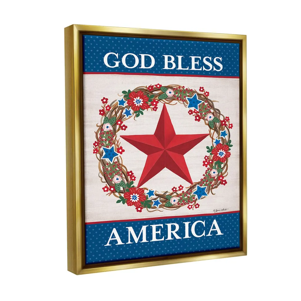 Stupell God Bless America Wreath Framed Floater Canvas Wall Art Design By Annie Lapoint - 17 X 21 - Gold