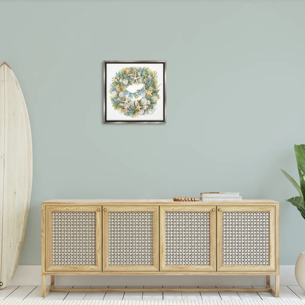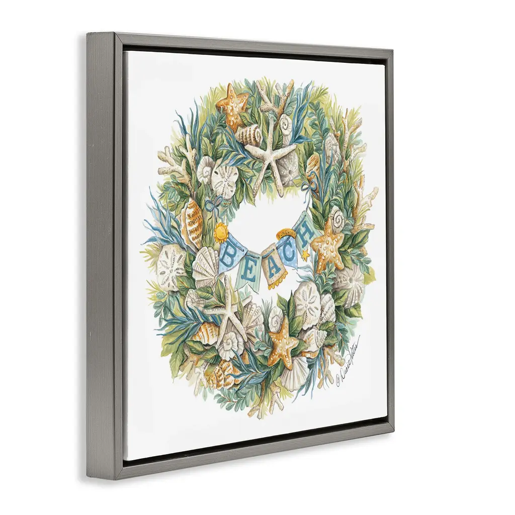 Stupell Holiday Beach Seashell Wreath Framed Floater Canvas Wall Art Design By Diane Kater - 25 X 25 - Grey