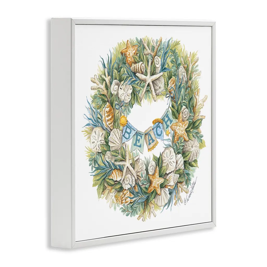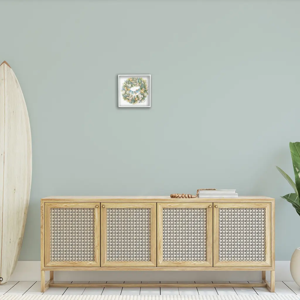 Stupell Holiday Beach Seashell Wreathe Nautical Christmas Framed Wall Art, 12 X 12 - Multi-Color - 12 X 12 - Wood - White