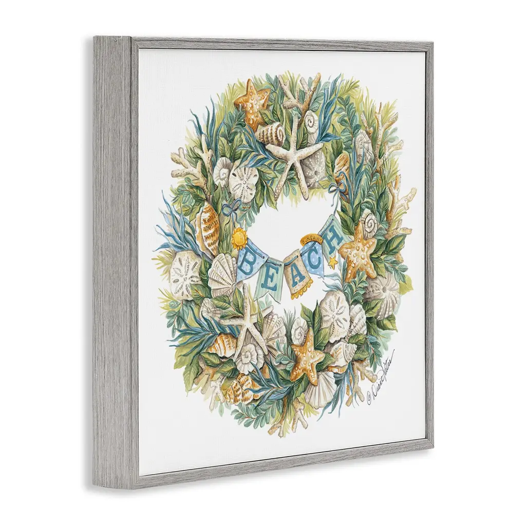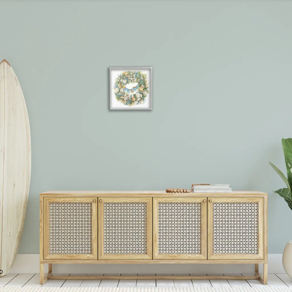 Stupell Holiday Beach Seashell Wreathe Nautical Christmas Framed Wall Art, 12 X 12 - Multi-Color - 17 X 17 - Wood - Grey